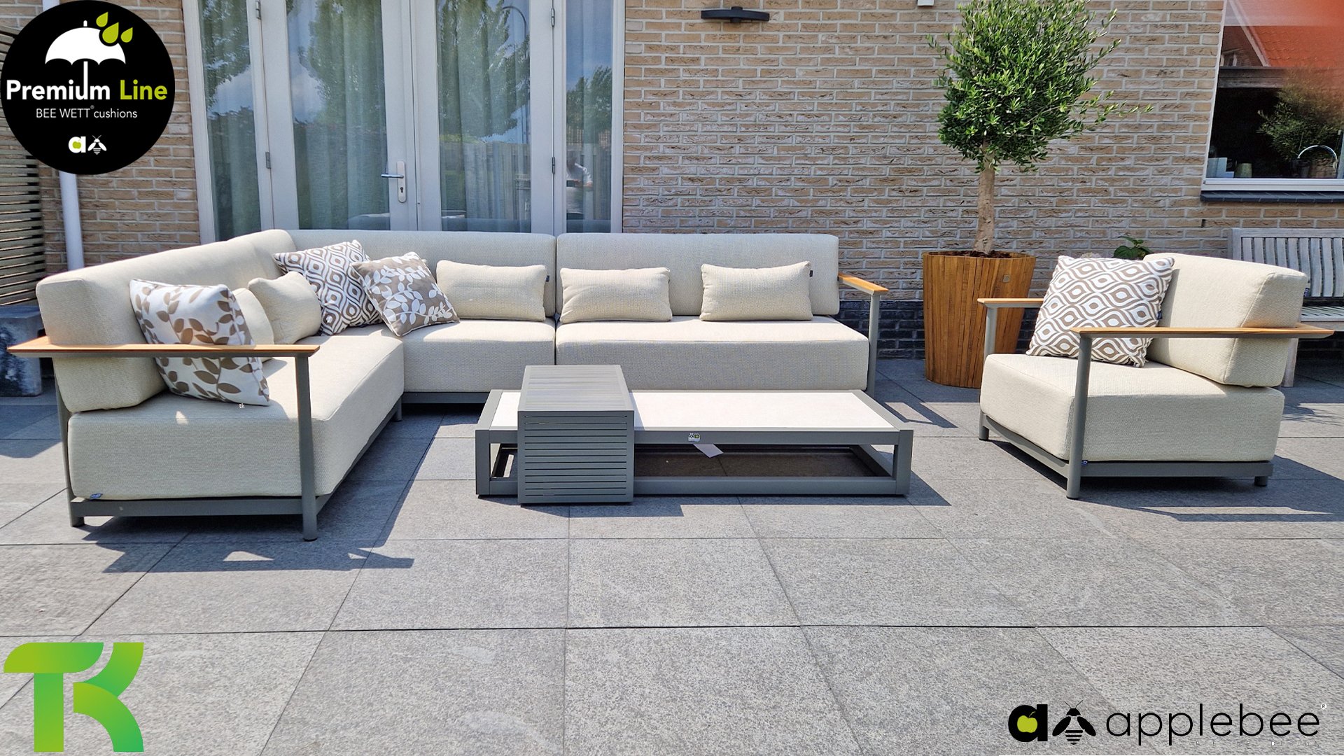 AppleBee Bee Wett sind spezielle wetterfeste Kissen die natürlich draußen liegen bleiben können. Die abnehmbaren Hüllen werden aus den besten möglichen Stoffen hergestellt und sind alle waschbar auf 30°C. Der Stoff ist zusätzlich wasserabstoßend und garantiert UV-beständig. Eine offenes Gewebe an der Unterseite der Kissen sorgt für eine perfekte Drainage. Der Vorteil, dass die Bee Wett Kissen und Polster unglaublich viel schneller trocknen als vergleichbare andere Kissen. Das Stoff hat eine gute Beständigkeit gegen Verfaulen und Stockflecken und darüber hinaus UV-beständig, weich, komfortabel und feuchtigkeitsabstoßend ist. Die Polster sind ausziehbar und waschbar.