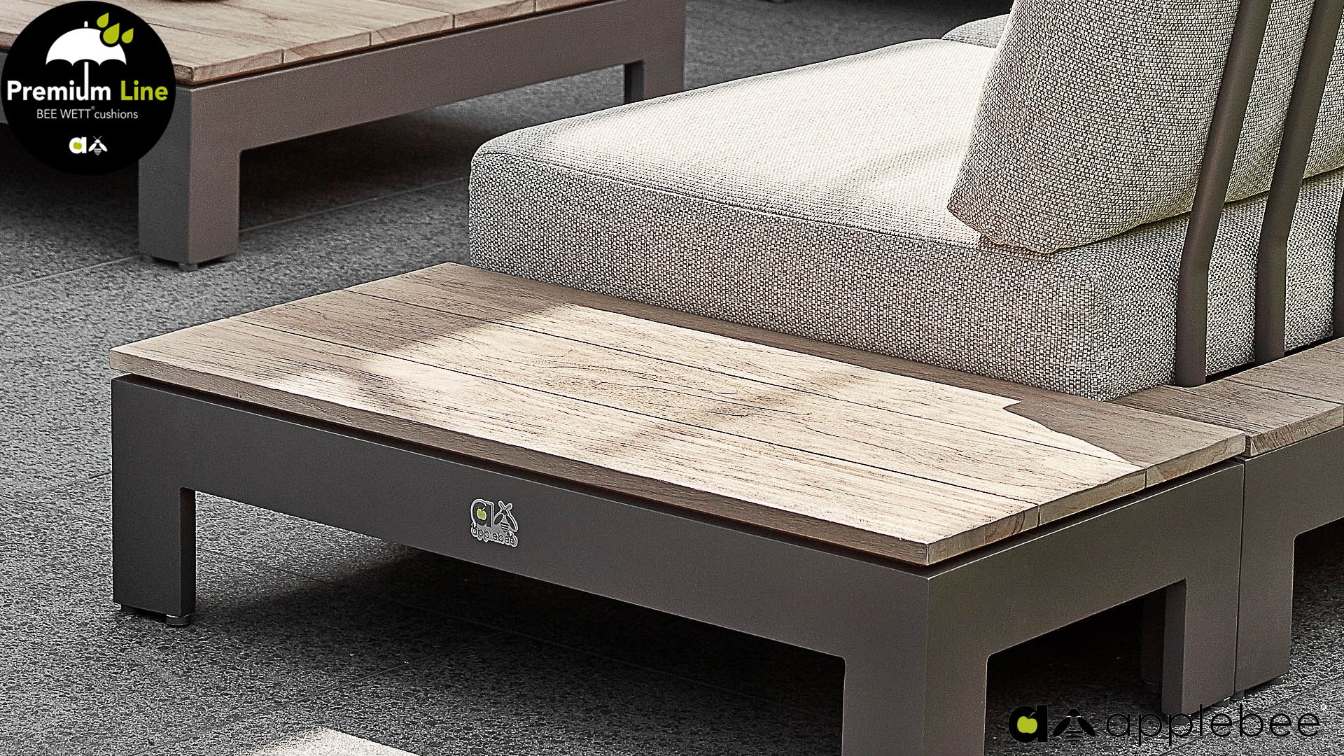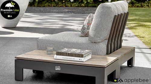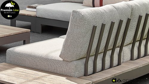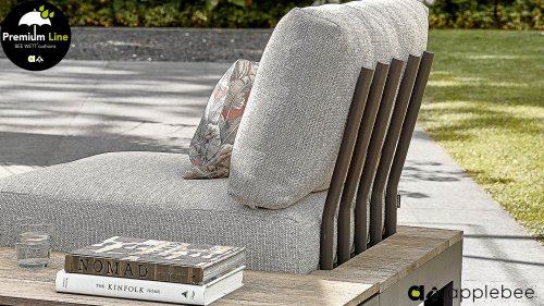 Die charakteristischen "Stäbe“ der Apple Bee Sticks and More Lounge Kollektion sind deutlich sichtbar und bilden ein schönes Detail an den Rückenlehnen. Die Materialkombination verleiht diesem Lounge-Set einen frischen Look.
