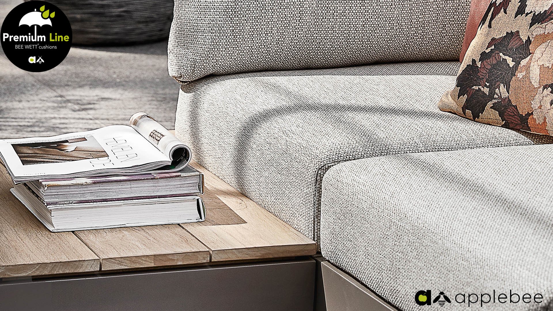 AppleBee Bee Wett sind spezielle wetterfeste Kissen die natürlich draußen liegen bleiben können. Die abnehmbaren Hüllen werden aus den besten möglichen Stoffen hergestellt und sind alle waschbar auf 30°C. Der Stoff ist zusätzlich wasserabstoßend und garantiert UV-beständig. Eine offenes Gewebe an der Unterseite der Kissen sorgt für eine perfekte Drainage. Der Vorteil, dass die Bee Wett Kissen und Polster unglaublich viel schneller trocknen als vergleichbare andere Kissen. Das Stoff hat eine gute Beständigkeit gegen Verfaulen und Stockflecken und darüber hinaus UV-beständig, weich, komfortabel und feuchtigkeitsabstoßend ist. Die Polster sind ausziehbar und waschbar.