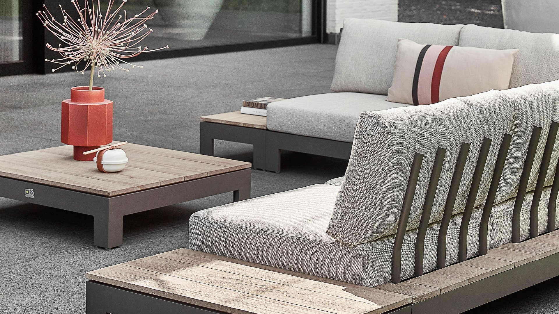 | Materialien Loungegruppe | Teak, Pulverbeschichtet Aluminium/Stahl |
