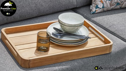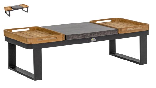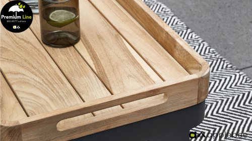 Nicht nur die modulare Anordnung dieses Applebee Mura Loungesets ist funktional, sondern auch der Couchtisch ist praktisch gestaltet. Mit einer leichten Betonplatte in der Mitte wird der Couchtisch mit zwei abnehmbaren Teakholztabletts an den Seiten vervollständigt. Super praktisch, um zum Beispiel Essen und Getränke zu servieren! Oder stellen Sie das Tablett mit Getränken auf das Sofa für Stabilität, damit Sie bequem in Ihrer Position bleiben können.
