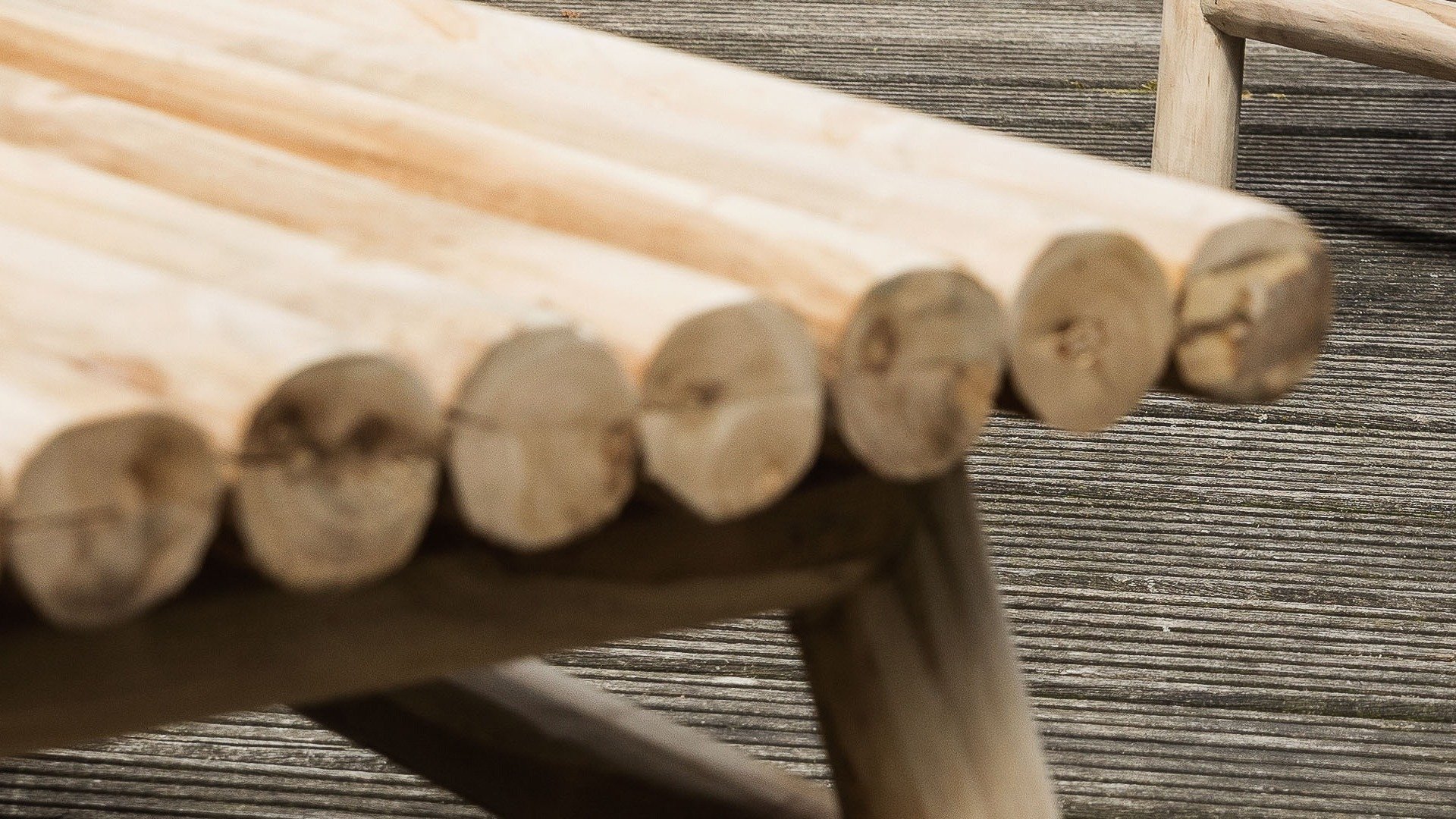 Die Applebee Rooty-Serie wird so naturgetreu wie möglich aus Teakholz hergestellt. Die Teakholzstämme werden daher natürliche Unregelmäßigkeiten/Risse und Spalten aufweisen, die für dieses natürliche Material so charakteristisch sind.