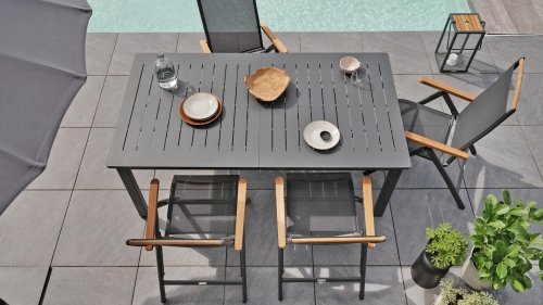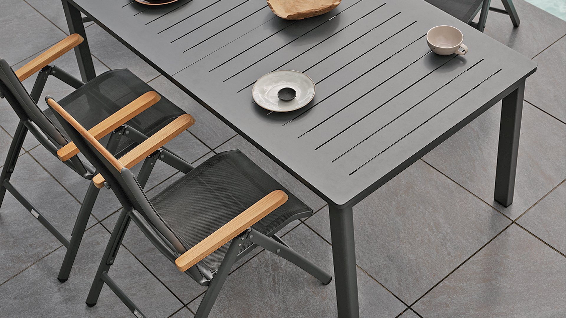 Aluminium ist sehr wartungsfreundlich und leicht. Diese praktischen Möbel sind leicht zu reinigen. Unser Aluminium mit einer festen Pulverbeschichtung ist witterungsbeständig und UV-beständig. Aluminium ist nicht rostanfällig, zeitlos und stilvoll.