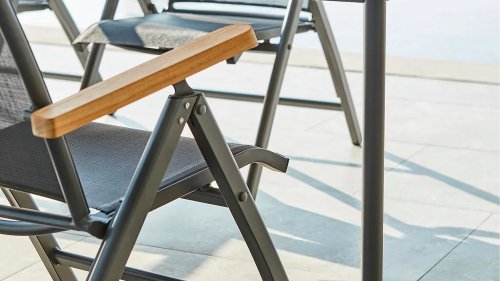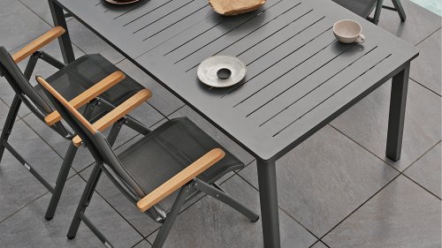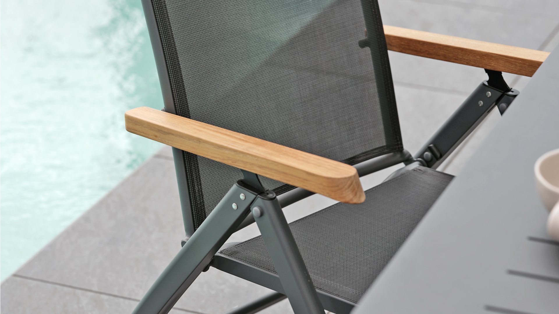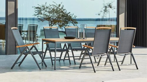 | Materialien Gartenstühle | Pulverbeschichtet Aluminium/Stahl, Teak |
