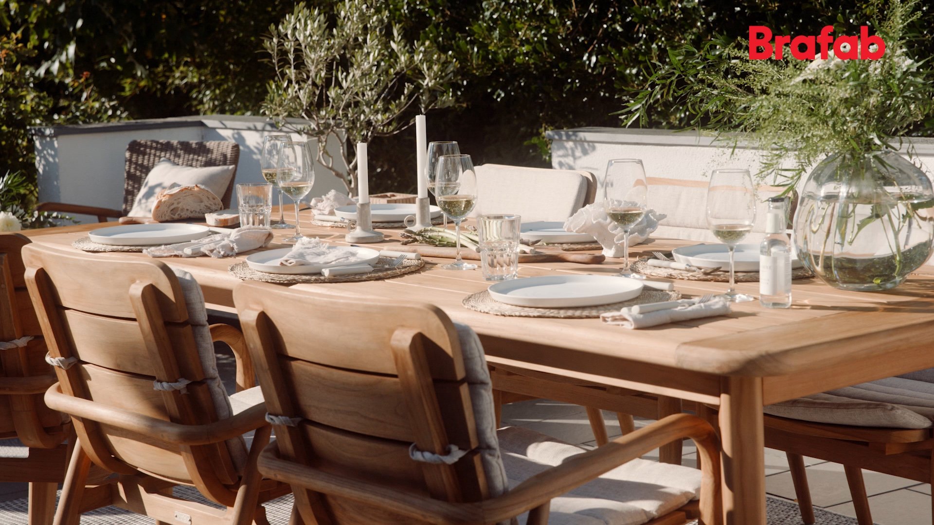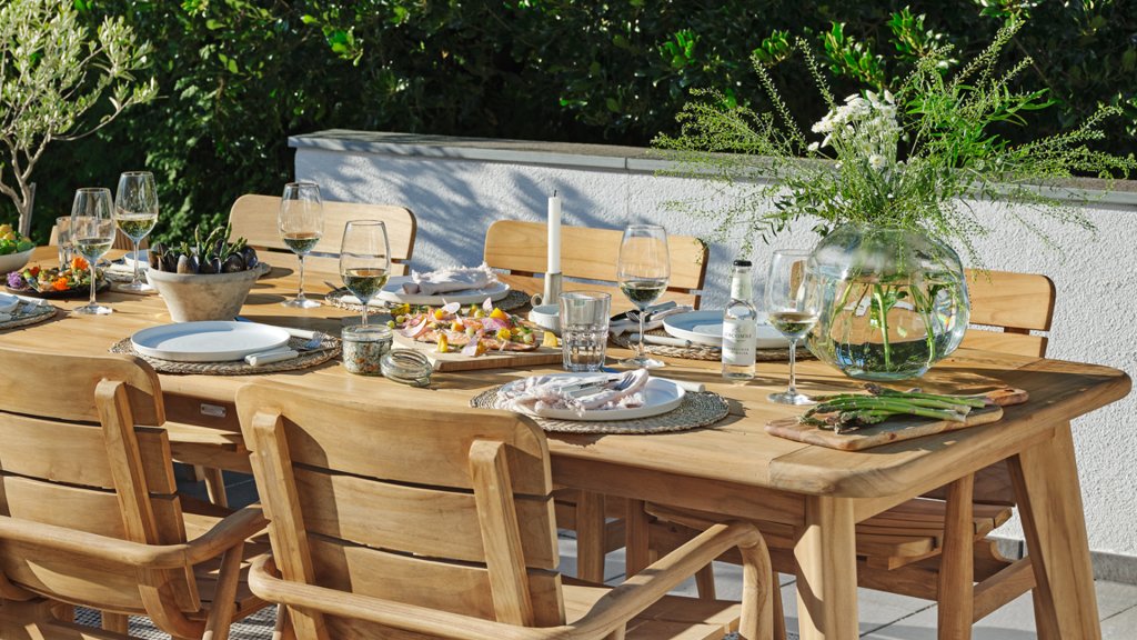 Das Brafab Lilja-Sortiment eignet sich sowohl zum Essen als auch zum Entspannen. Organische runde Formen in warmem Teakholz. Robuste Elemente, die durch die abgerundeten Details dennoch Eleganz ausstrahlen.
