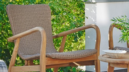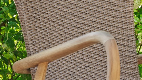 Lehnen Sie sich zurück und entspannen Sie sich in diesem herrlichen Lilija Dining-Sessel. Die Armlehnen aus Teakholz sind ein echter Blickfang. Die Sitzfläche besteht entweder aus stilvollen breiten Teakholzrippen oder aus geflochtenem synthetischem Rattan. die Brafab Lilja wurde sowohl zum Entspannen als auch zum Essen geschaffen, mit organischen runden Formen aus Teakholz. Substanzielle Elemente vermitteln mit ihren geschwungenen Details Eleganz.
