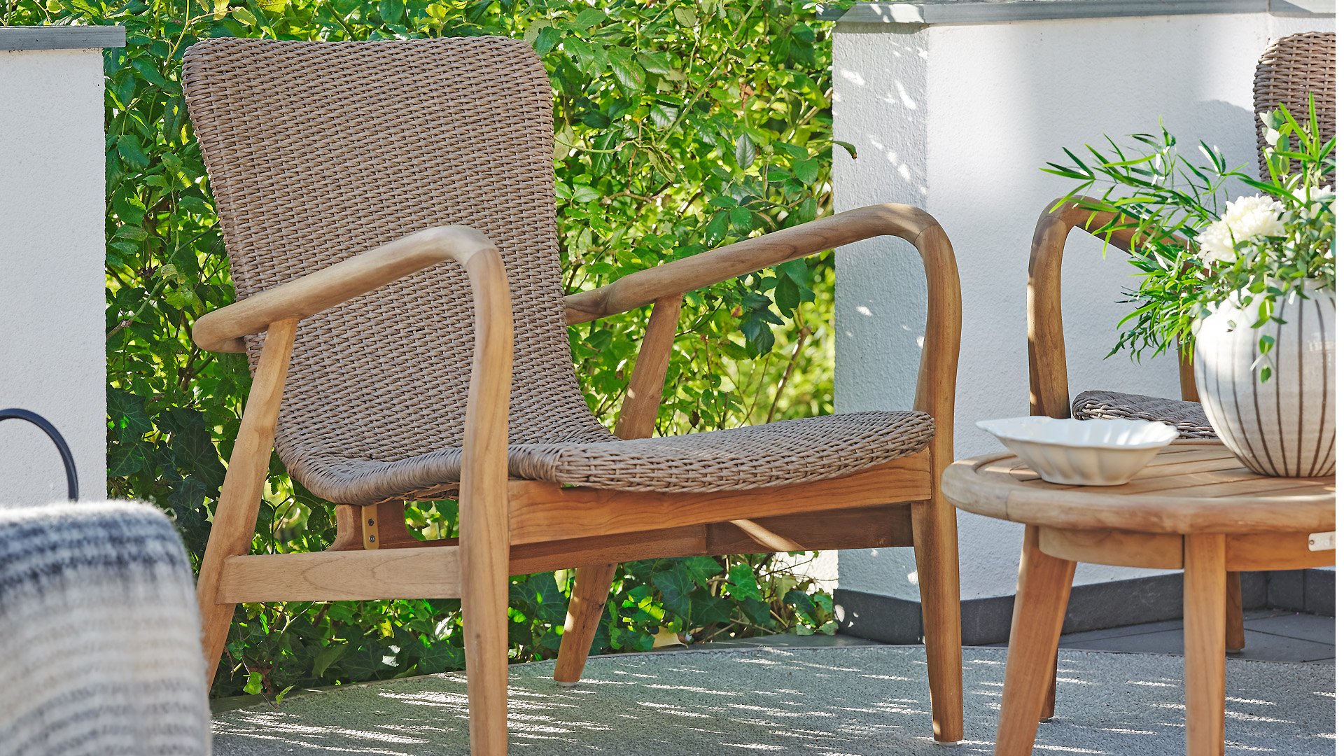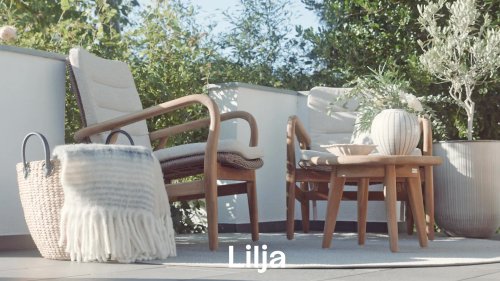 Das Brafab Lilja-Sortiment eignet sich sowohl zum Essen als auch zum Entspannen. Organische runde Formen in warmem Teakholz. Robuste Elemente, die durch die abgerundeten Details dennoch Eleganz ausstrahlen.