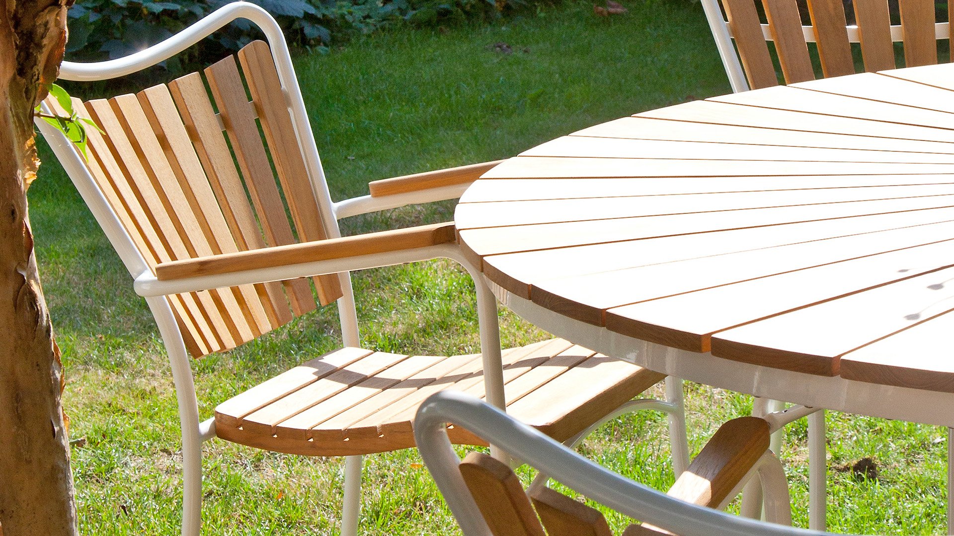 | Materialien Esstisch Sets | Pulverbeschichtet Aluminium/Stahl, Teak |