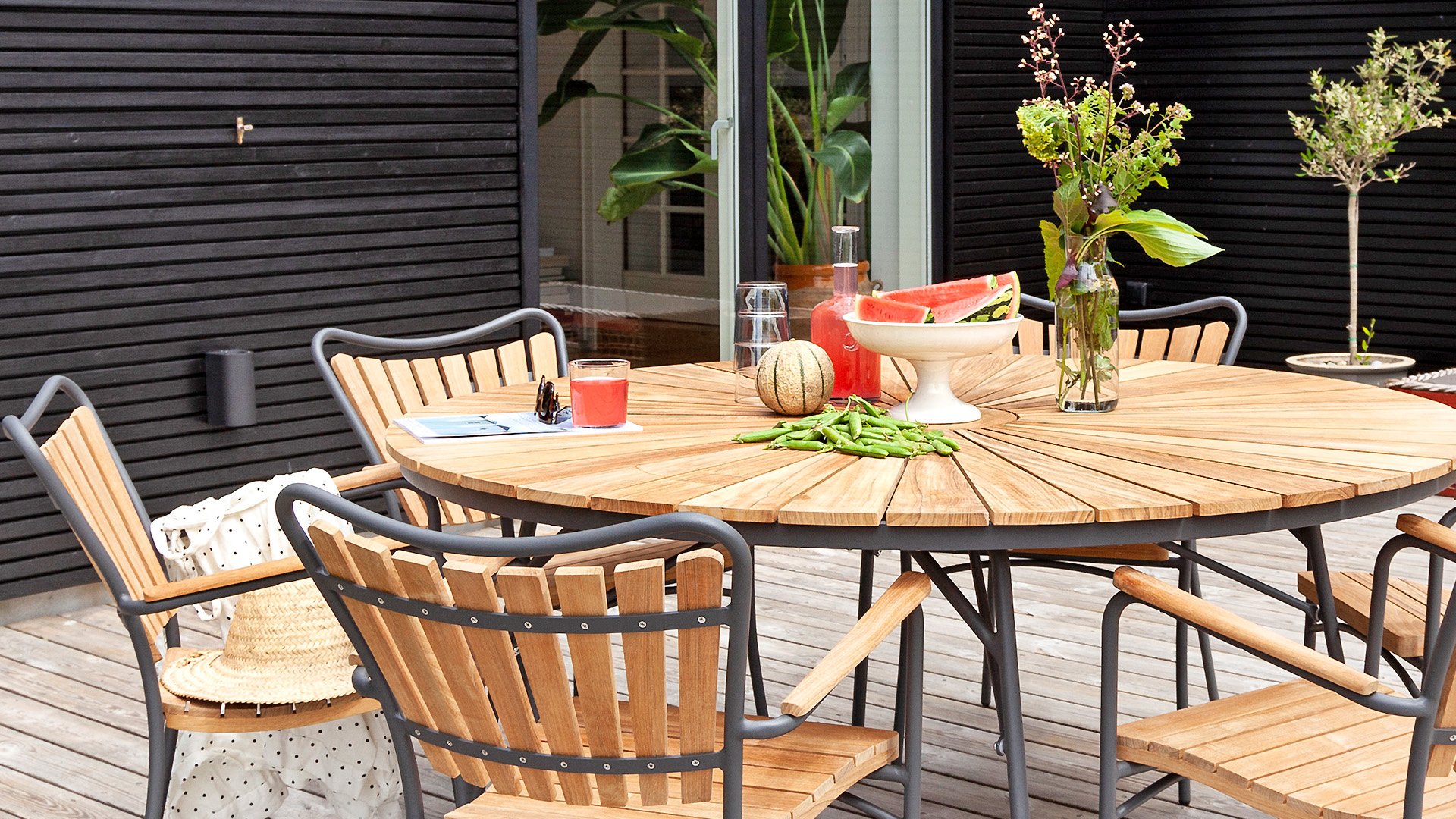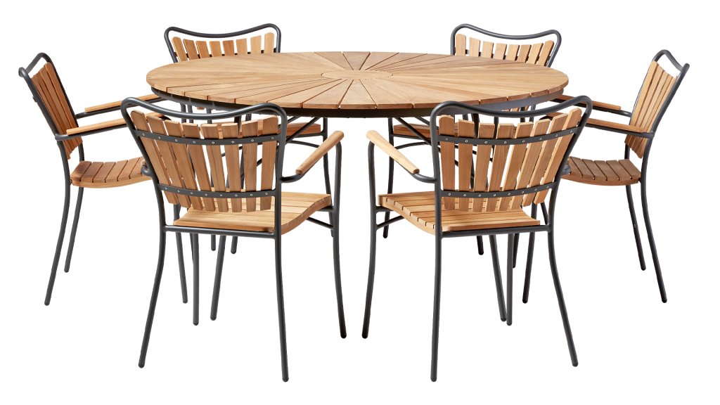 | Materialien Esstisch Sets | Pulverbeschichtet Aluminium/Stahl, Teak |