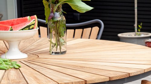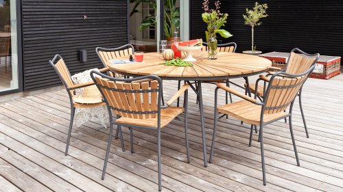 Gartenmöbel aus Teakholz bieten einen atemberaubenden Blick.Teakholz eignet sich besonders gut für den Einsatz im Außenbereich. Es ist resistent gegen Schädlinge und Pilze und widerstandsfähig gegen Sonne, Regen und Schnee. Mit der Zeit entwickelt das Teakholz eine silbergraue Patina. Gartenmöbel aus Teakholz bieten einen atemberaubenden Blick. Darüber hinaus ist es starkes Material und erfordert nur wenig Wartung. Wer die ursprüngliche Farbe des Teakholzes bevorzugt, kann durch regelmäßiges benutzen unser Pflegemittel ganz einfach das Vergrauen des Holzes verhindern.Darüber hinaus können Sie Teak mit grüner Seife reinigen. Durch Temperaturunterschiede und durch den Wechsel von Feuchtigkeit und Trockenheit können kleine Haarrisse entstehen. Es ist üblich, dass Man in dies Unvollkommenheiten findet, diese Unregelmäßigkeiten sind kennzeichnend für dieses Produkt. Diese Unregelmäßigkeiten können nie einen Anlass zu Reklamation, Garantie oder Claim formen. Es betrifft eine Unterschrift von Originalität! Wir gewähren Garantie auf alle Produktions- und Konstruktionsfehler. Die Wirkung von Teakholz ist nicht enthalten. Wenn Sie sich für Teakholz entscheiden, erwarten wir, dass Sie diese Eigenschaften zu schätzen wissen. Eventuell auftretende Haarrisse, Äste im Teakholz und raue Oberflächen im Laufe der Zeit fallen nicht unter unsere Garantie. Diese Eigenschaften verleihen dem Teakholz seinen eigenen Charakter und sind Teil der Optik. Seien Sie vorsichtig mit einem Blumentopf oder einer Vase auf Ihrem Gartentisch aus Teakholz, da dies zu hartnäckigen Kreisen oder Farbunterschieden führen kann.