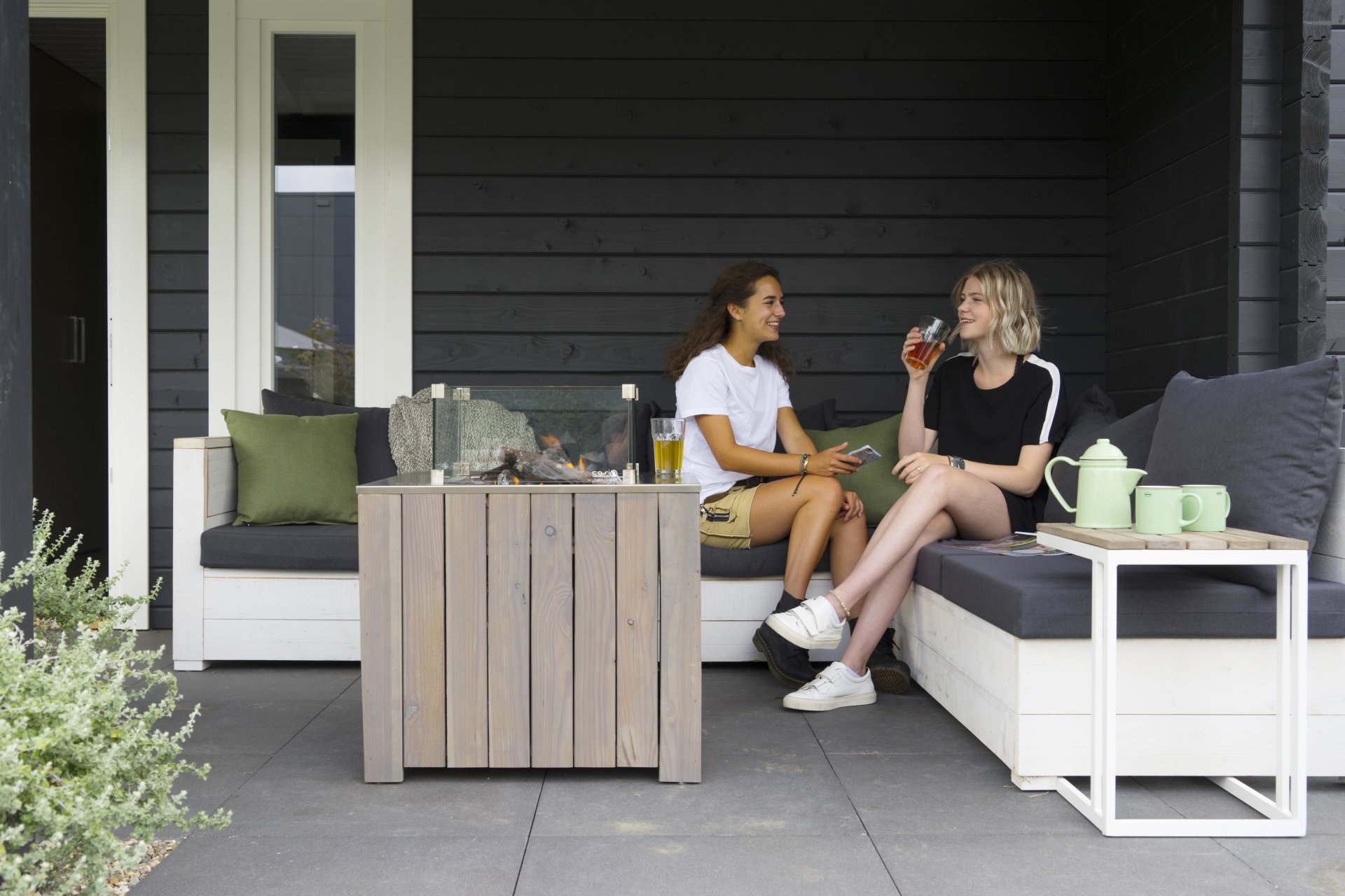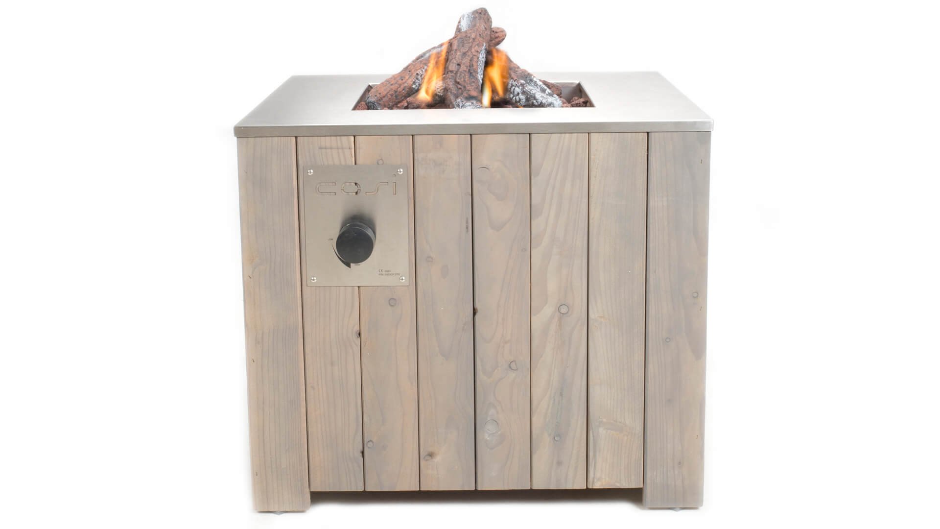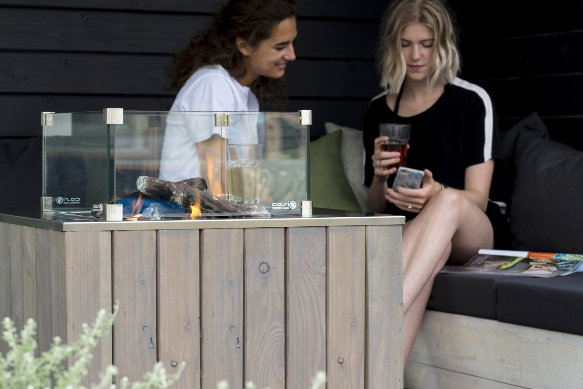 Der Cosicube ist eine wunderbare Ergänzung zu Ihrem Lounge-Set. Der Tisch ist mit einem eingebauten Gaskamin versehen. Aber keine Sorge, Sie werden von Rauch oder Funken nicht belästigt. Der Cosi Cube ist zu hundert Prozent sicher. Der Tisch ist nämlich mit einem Edelstahlbrenner ausgestattet, der durch die mitgelieferten Holzscheite und Lavasteine verdeckt wird. Dadurch ähnelt der Cosi Cube einem mit echtem Holz befeuerten Kamin und sorgt - buchstäblich - für die warme, gemütliche Atmosphäre, die Sie sich wünschen. Und aufgrund der Edelstahltischplatte ist es ein echter Tisch, der ferner aus Douglasienholz mit Grauschleier hergestellt ist. Das Anzünden ist ganz einfach, der Tisch ist mit einer elektronischen Zündung ausgestattet. Der Cosi Cube wird über eine Gasflasche betreiben, die aber auch nicht sichtbar ist. So bleibt der Cosi Cube stilvoll.