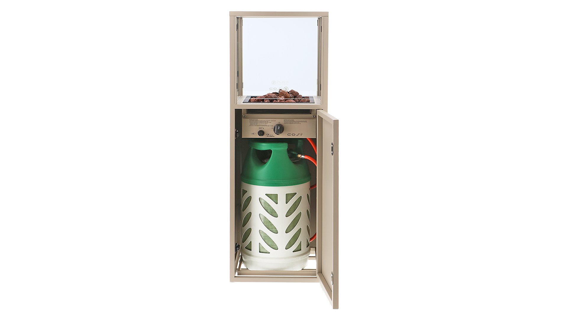 Diese fantastischen säulenförmigen Gaskamine von Cosiscoop stehlen die Show im Garten, auf der Terrasse und unter der Veranda. Der Pillar ist in zwei Varianten erhältlich: stilvolles Schwarz und robustes Teakholz. Die Cosiscoop Pillars sind eigenständige Objekte, die an jedem Ort die Show stehlen. Im Gegensatz zu anderen Cosiscoops funktionieren diese großen Laternen mit einer Gasflasche, sowohl 5 kg als auch 10 kg, anstelle einer Gaskartusche. Dadurch brennt die Pillar um ein Vielfaches länger als die kleineren Scoops. Wenn Sie eine 5-kg-Gasflasche in den Pillar stellen, können Sie diese säulenförmigen Scoops etwa 70 Stunden lang genießen. In diese schönen Säulen passen sowohl die Gasflaschen von Benegas als auch die DIN-Gasflaschen.