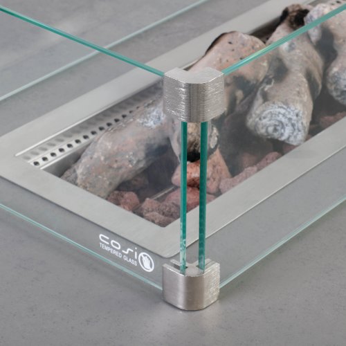 Für den letzten Schliff kann der Cosi mit verschiedenen Zubehörteilen kombiniert werden. Der Cosi Feuertisch wird gebrauchsfertig geliefert. Dies bedeutet, dass ein Druckregler mit Gasschlauch, Batterie für Zündung, Keramikstämmen und Lavasteinen bereits enthalten ist. Alles was benötigt wird ist eine Gasflasche. In den Cosi passen Gasflaschen mit einer maximalen Höhe von 40 cm. Dies können zum Beispiel die 5-kg-Gasflaschen von Benegas sein. Möchten Sie dem Cosi einen besonders luxuriösen Look verleihen? Dann wählen Sie das Cosi Glasset. Dies ist perfekt auf Ihren Cosi zugeschnitten. Sie können die Cosi-Tischplatte auf das Glasset legen, um beispielsweise noch mehr Platz für Snacks und Gläser zu schaffen. Bitte beachten Sie: Diese Tischplatte kann nur verwendet werden, wenn das Feuer nicht benutzt wird. Ein Cosi-Feuertisch kann nach Wunsch mit einem Glasset und / oder einer Allwetterschutzhülle erweitert werden.