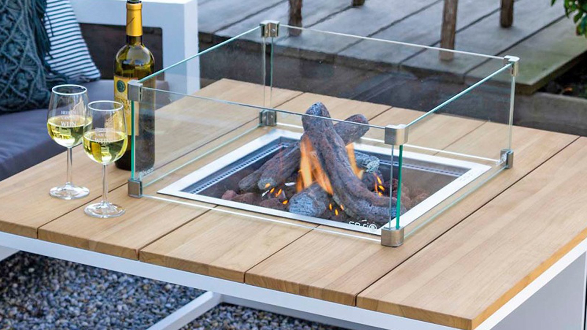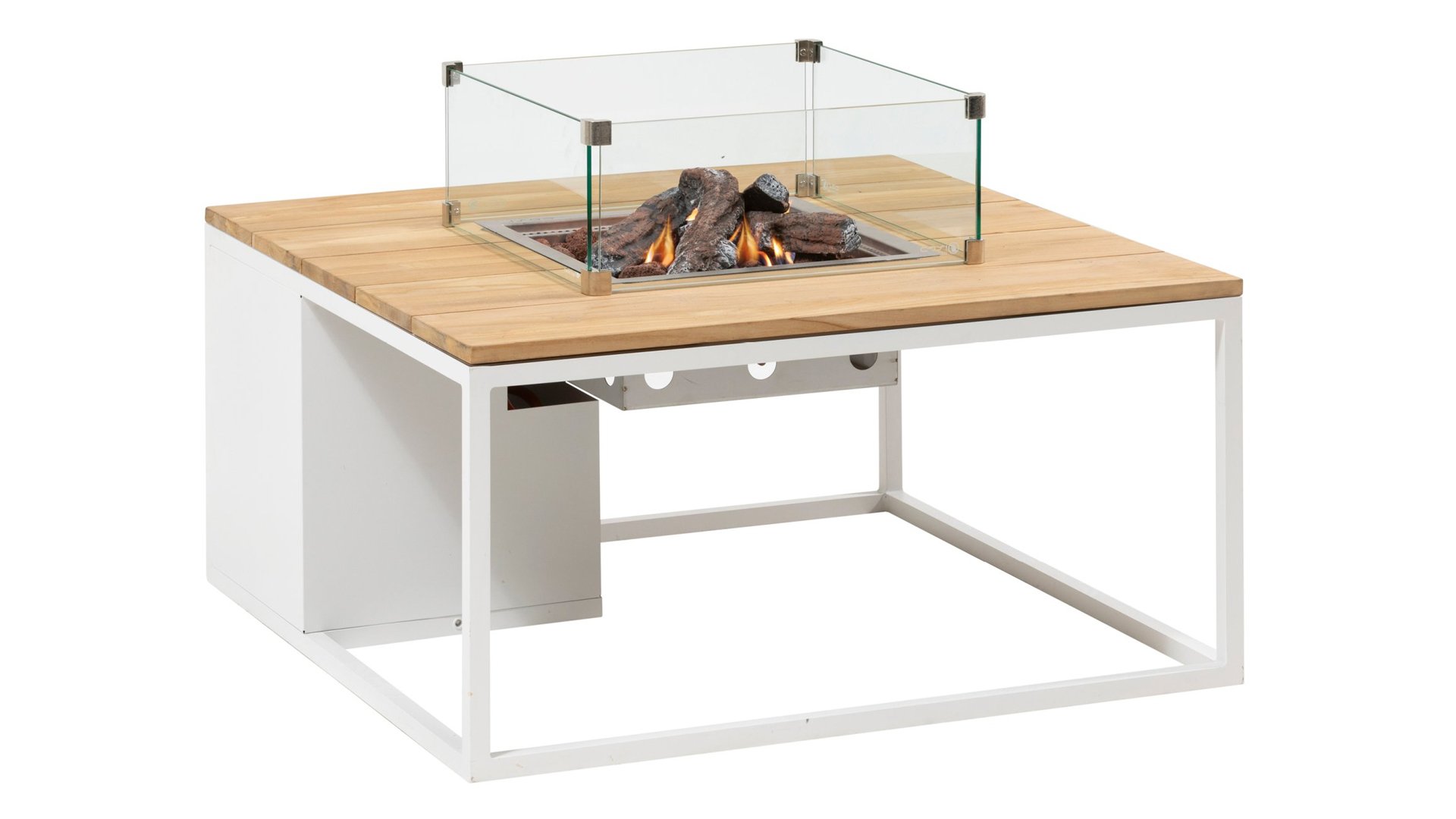 Cosiloft 100 Feuertisch White/Teak + Glasset