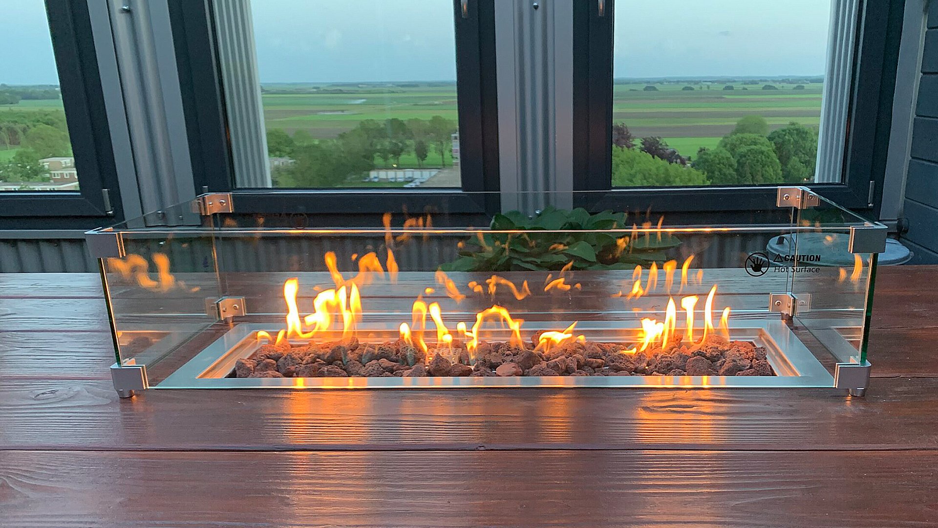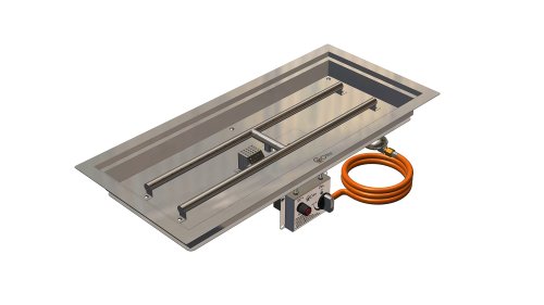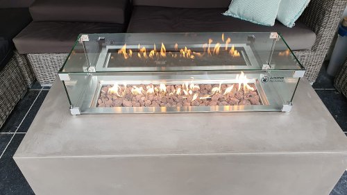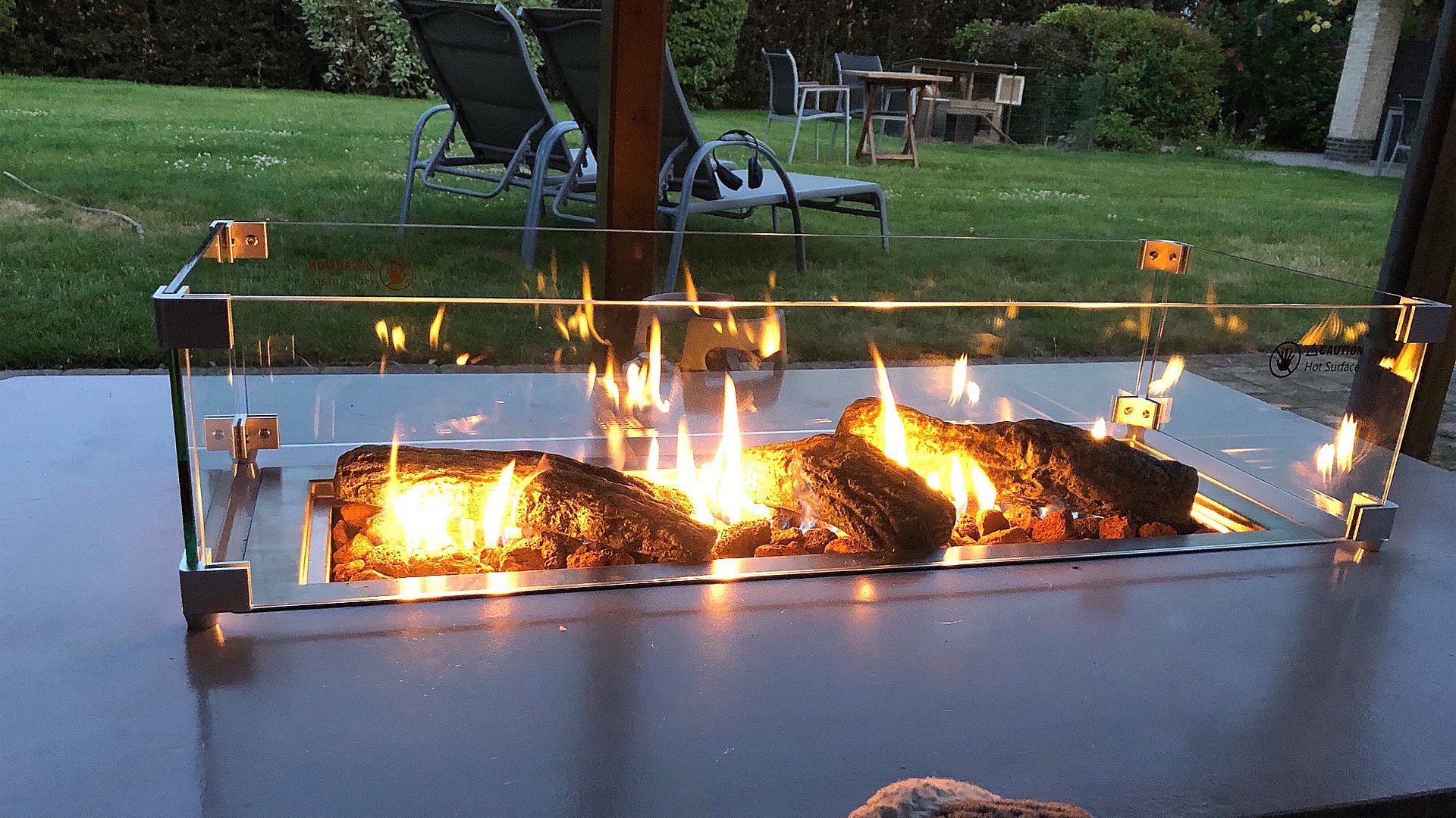 GoFire-Einbaubrennern sind inklusive: Einbaubrenner, Deckel, Lavasteine, Gasdruckregler und flexibles Bedienfeld.