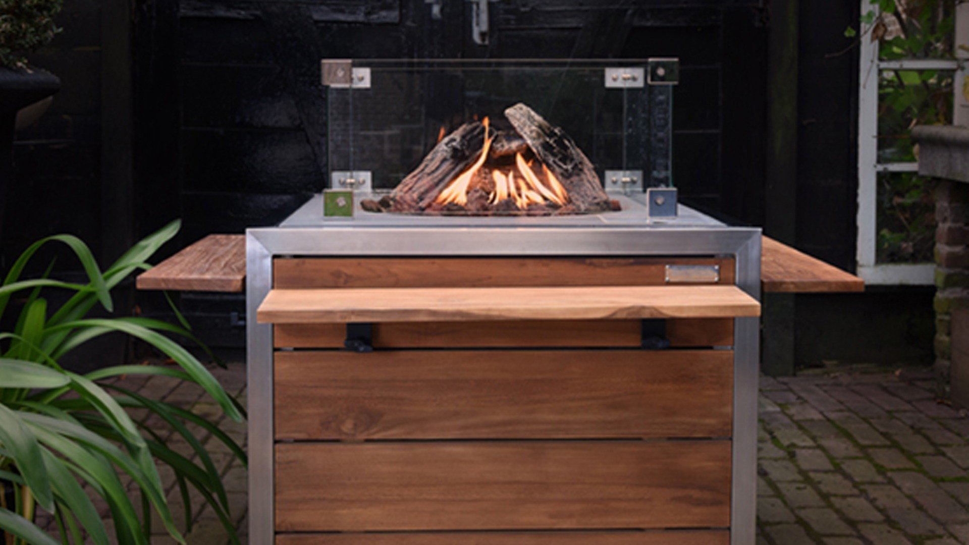 Feuertische inkl. Abdeckung, Holzscheite, Lavasteine und Gasleitung (2,5m).