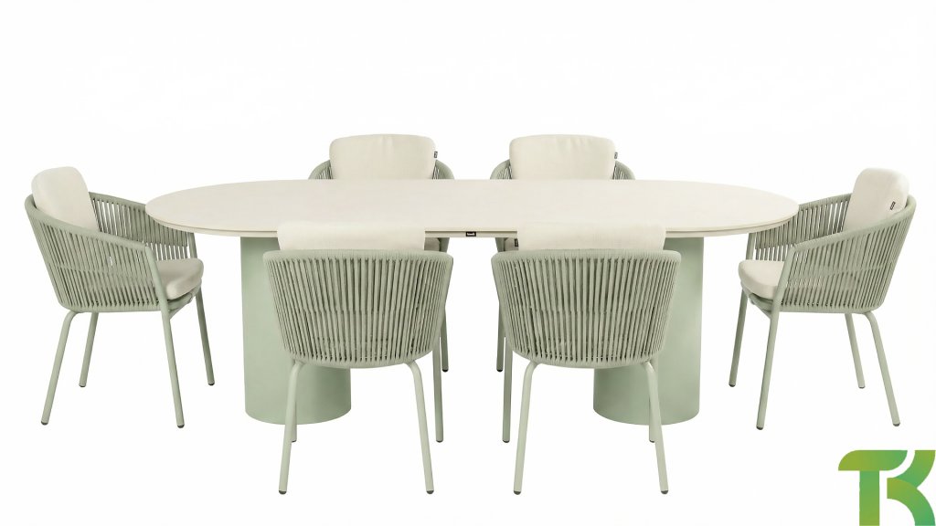 1 x Hartman Valencia Tisch Alu Soft Green - Keramik Beige 220x100cm