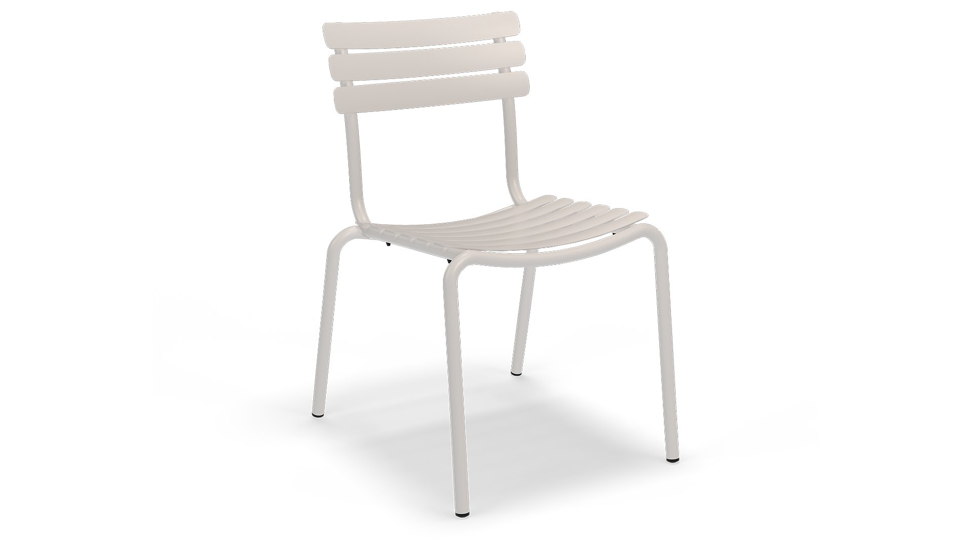 ALUA ist in 6 Farben erhältlich: Muted White / Black / Beige / Cayenne / Ice Blue / Olive Green und bietet die Wahl zwischen Modellen mit oder ohne Armlehnen. Konzipiert für einfaches Stapeln, kann bis zu 10 Stück gestapelt werden. Die gebogenen Aluminiumlamellen sind so geformt, dass Sie ein angenehmes Sitzgefühl erhalten und dem Stuhl ein weiches und einladendes Aussehen verleihen.