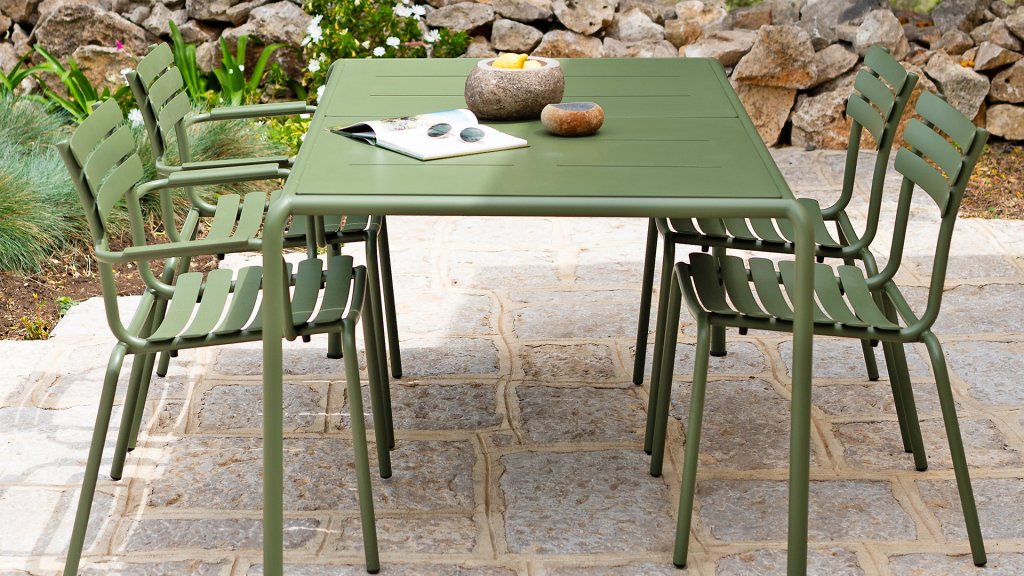 Aluminium ist sehr wartungsfreundlich und leicht. Diese praktischen Möbel sind leicht zu reinigen. Unser Aluminium mit einer festen Pulverbeschichtung ist witterungsbeständig und UV-beständig. Aluminium ist nicht rostanfällig, zeitlos und stilvoll.
