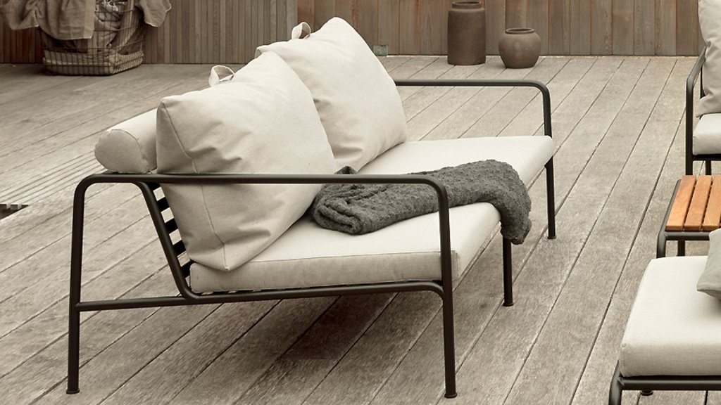 Die HOUE AVON-Kollektion wurde mit dem Wunsch entworfen, etwas mit einem sehr leichten Erscheinungsbild und einem niedrigen schlanken Profil zu schaffen, während ein hohes Komfortniveau beibehalten wird. Das pflegeleichte Gestell und die Konstruktion der großen weichen Rückenkissen sind genau das: die Einfachheit der Struktur, bei der niedrige Linien dafür sorgen, dass das Design immer stolz aussieht, sowohl mit als auch ohne Kissen - Sommer oder Winter. Die Griffe der Kissen sind ein Statement zur Funktion des Produkts, was sie leicht zu greifen und bei Bedarf zu verstauen macht.