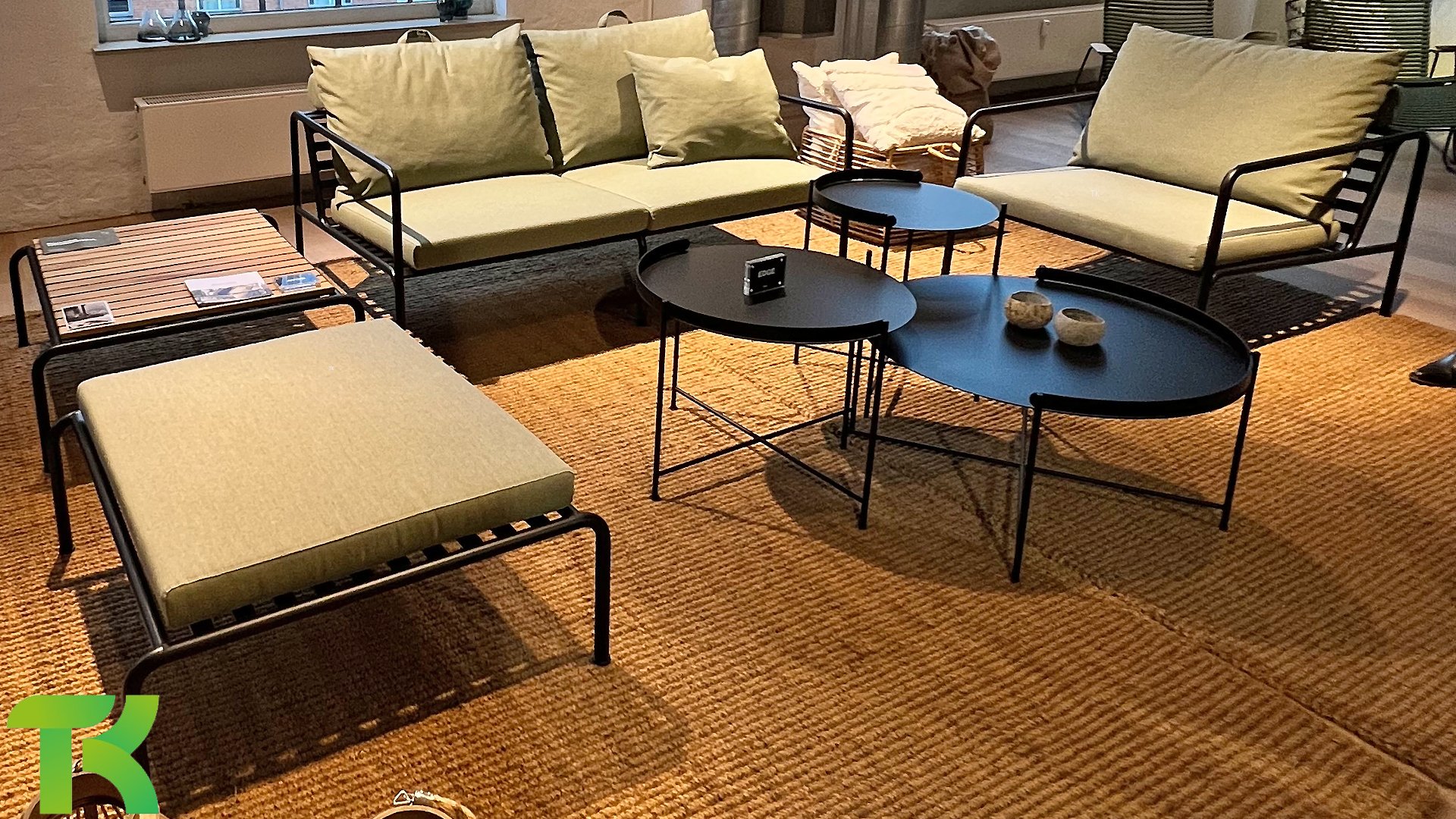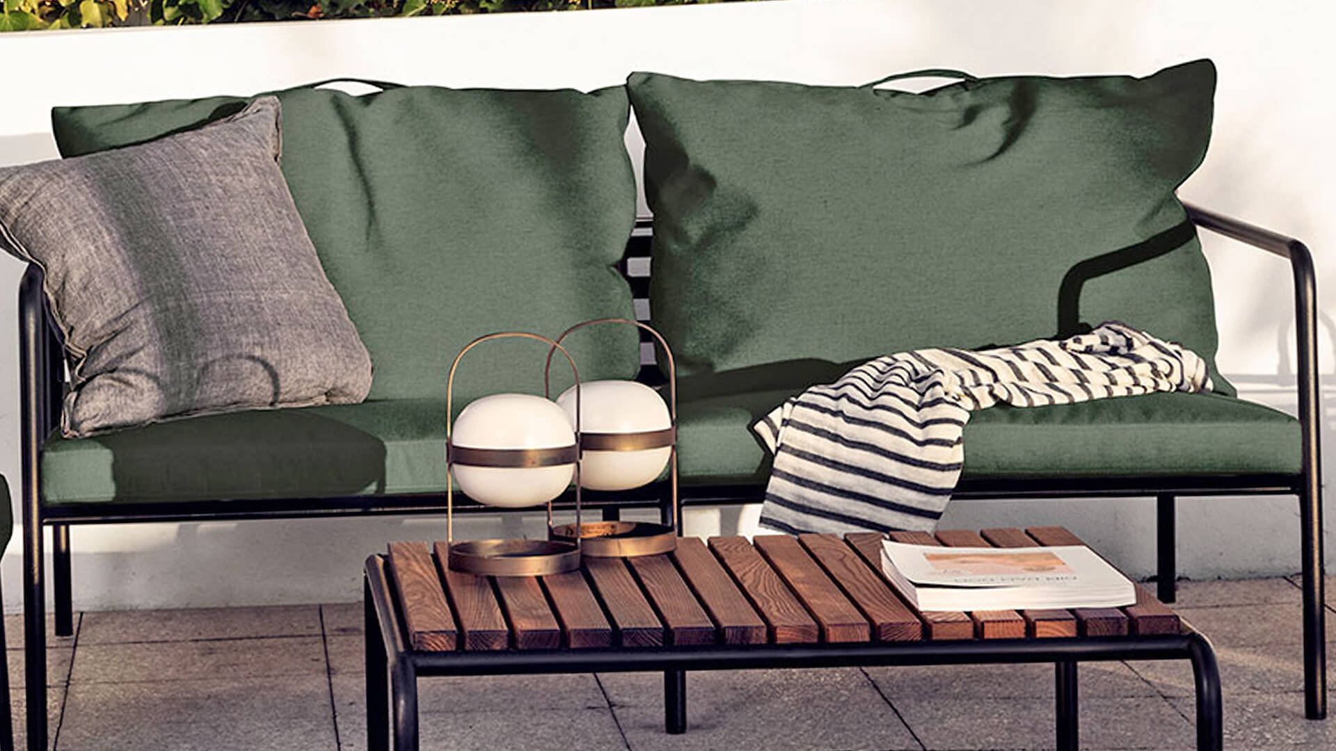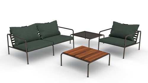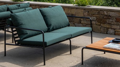 Die HOUE AVON Lounge-Kollektion von Houe besteht aus einem 2-Sitzer-Sofa, einem Loungesessel und einer Ottoman mit Kissen aus Sunbrella Heritage-Stoff sowie einem Lounge-Tischrahmen, der mit oder ohne Eschenholz thermisch behandelte-Tischplatte verwendet werden kann. Die Rahmen bestehen aus pulverbeschichtetem schwarzem Stahl. Der zeitlose Charakter von Avon-Möbeln sorgt dafür, dass Sie sie endlos mit anderen Gartenmöbeln kombinieren können.