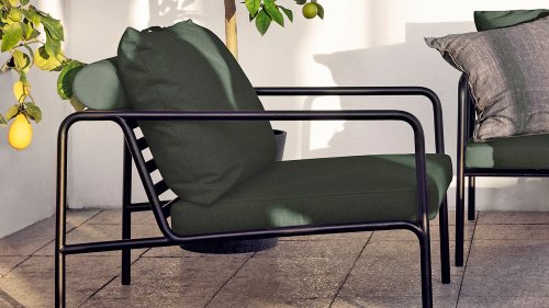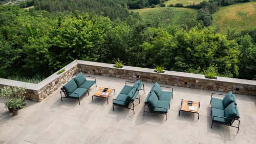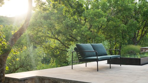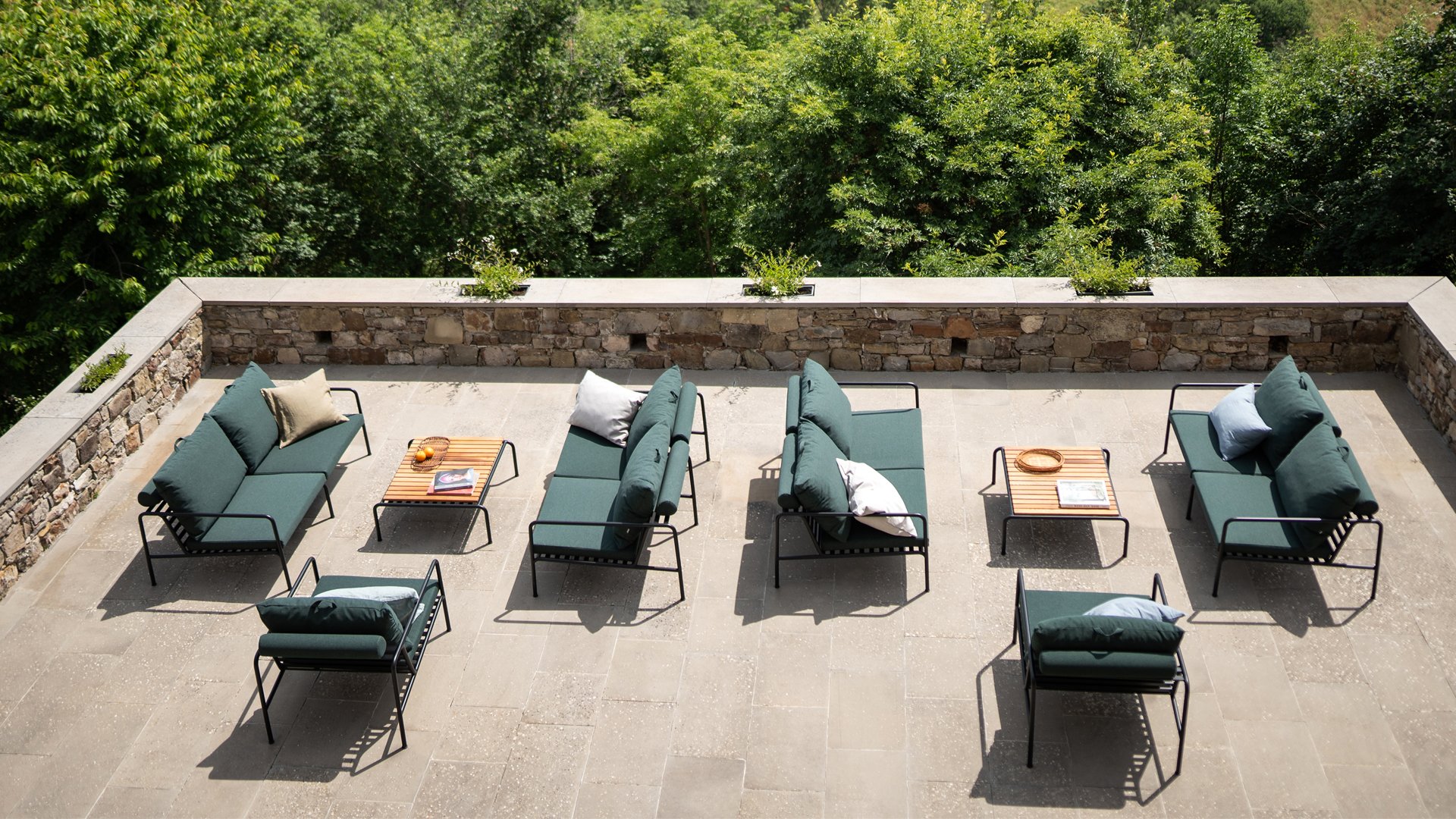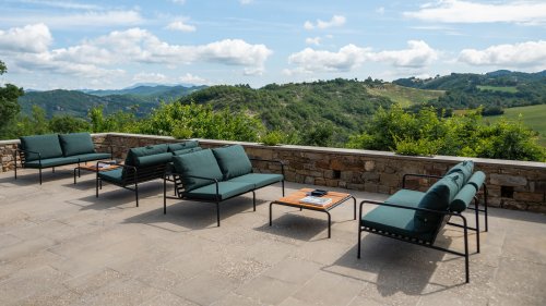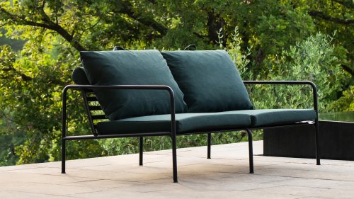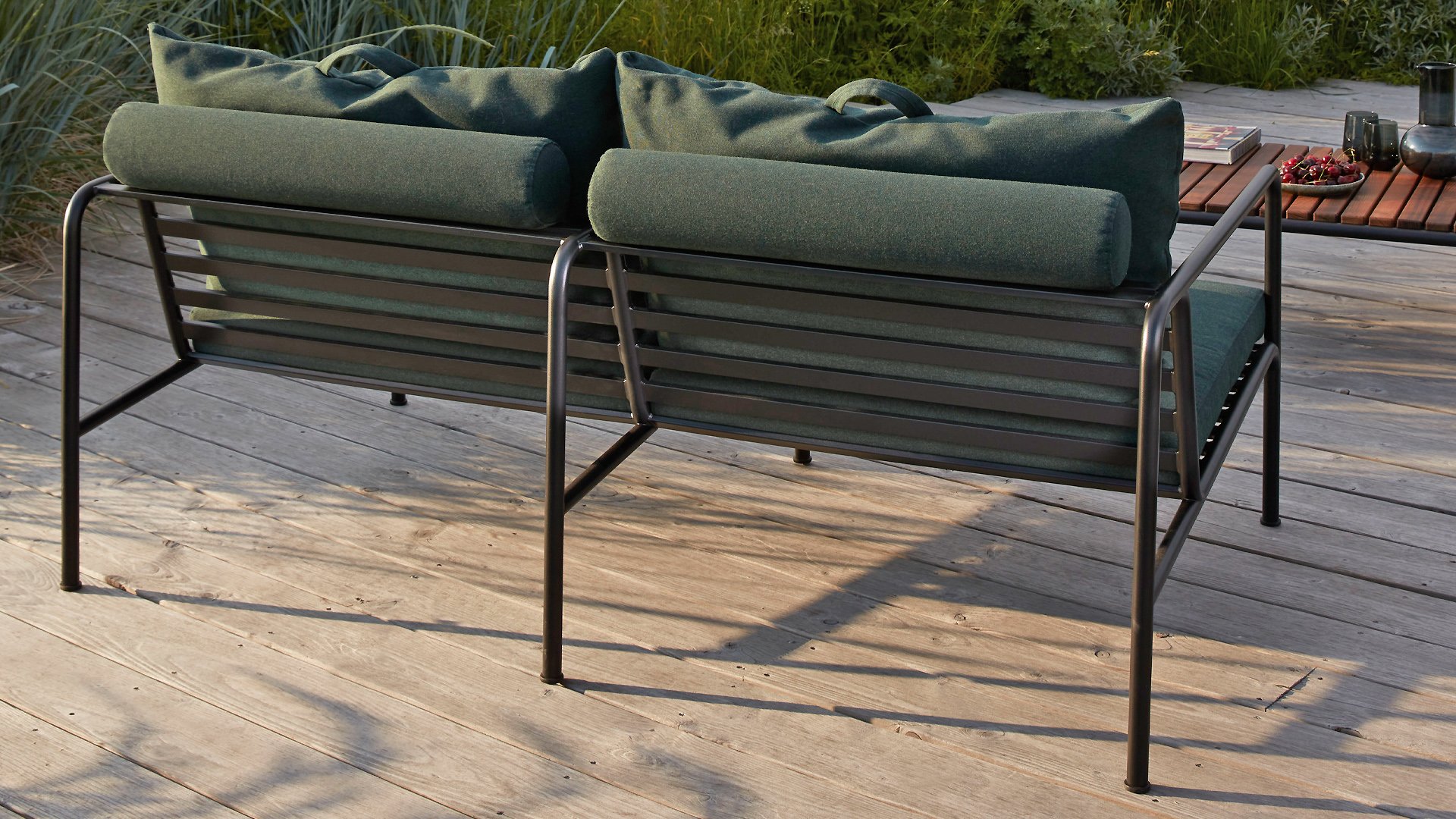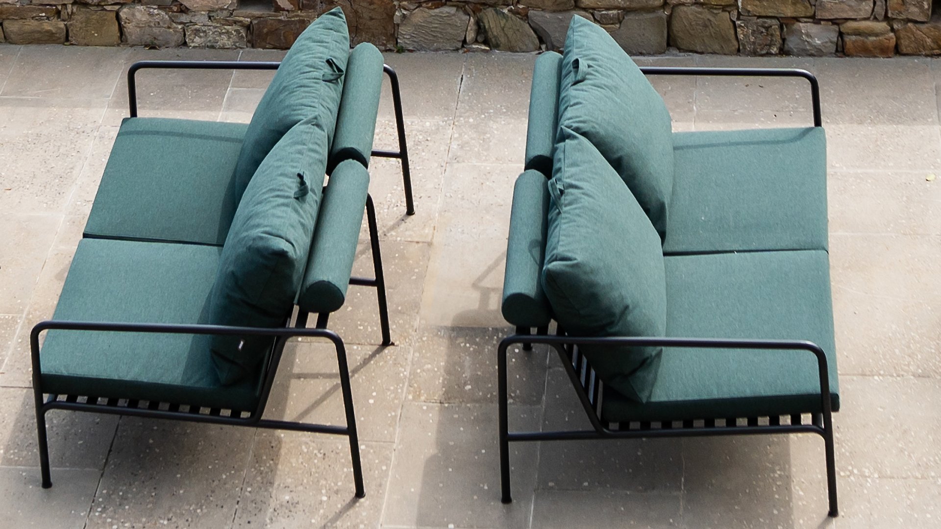 Der wartungsfreie Pulverbeschichteter Rahmen und die Konstruktion der großen weichen Rückenkissen sind genau das - die Einfachheit der Struktur, bei der niedrige Linien dafür sorgen, dass das Design sowohl mit als auch ohne Kissen immer stolz erscheint - Sommer oder Winter. Die Griffe der Kissen sind eine Aussage über die Funktion des Produkts und machen sie bei Bedarf leicht zu greifen und aufzubewahren.