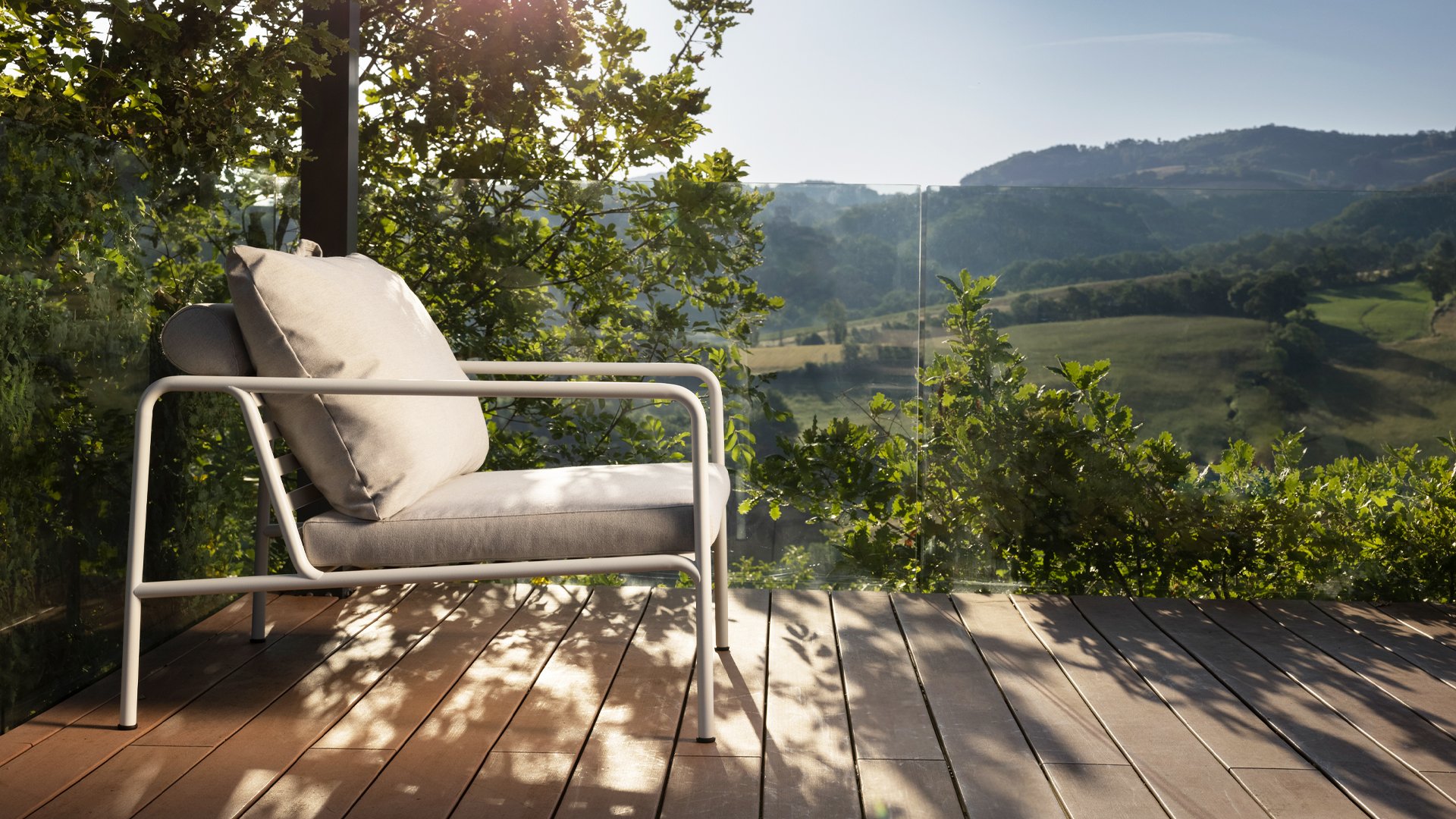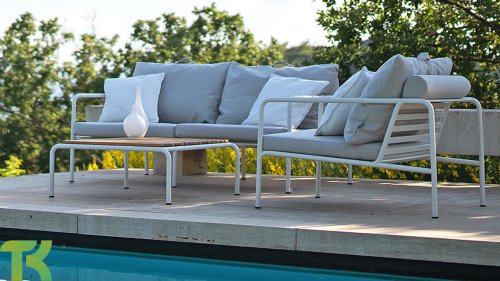Die HOUE AVON-Kollektion wurde aus dem Wunsch heraus entworfen, etwas mit einem sehr leichten Erscheinungsbild und einem niedrigen, schlanken Profil zu schaffen, während ein hohes Maß an Komfort beibehalten wird. Der wartungsfreie Rahmen und die Konstruktion der großen weichen Rückenkissen ist genau das: die Einfachheit der Struktur, bei der niedrige Linien dafür sorgen, dass das Design immer stolz aussieht, ob mit oder ohne Kissen - Sommer oder Winter. Die Griffe der Kissen sind ein Statement für die Funktion des Produkts und machen sie bei Bedarf leicht zu greifen und zu verstauen.