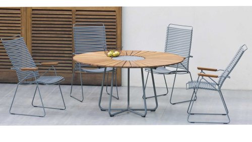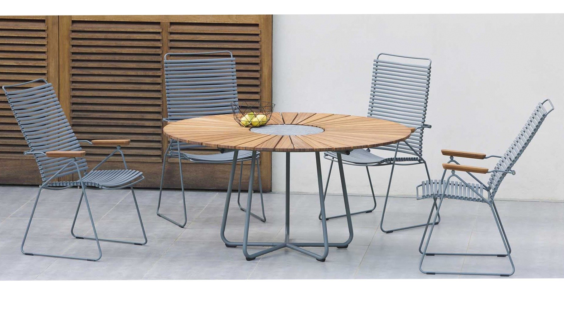 Der Houe Circle ist ein runder Gartentisch mit einer schönen Platte aus gemischtem Bambus. Den Kreis gibt es in 2 Größen, nämlich 150cm und 110cm. Das Schöne an diesem runden Tisch ist, dass er viel Platz bietet. In der Mitte des Kreistisches befindet sich ein zusammengesetzter Stein. Dies ist nützlich, wenn Sie Ihre heißen Pfannen usw. Das skandinavische Design in Kombination mit dem nachhaltigen Bambus sorgt dafür, dass dieser Tisch in jedem Garten gut zur Geltung kommt. Bambus ist eine schnell wachsende Pflanze und daher wesentlich nachhaltiger als Teak. Wir empfehlen den Tisch 2-3 mal im Jahr zu ölen. Wenn der Tisch gut gepflegt wird, hält er sehr lange und behält seine schönen Farben.