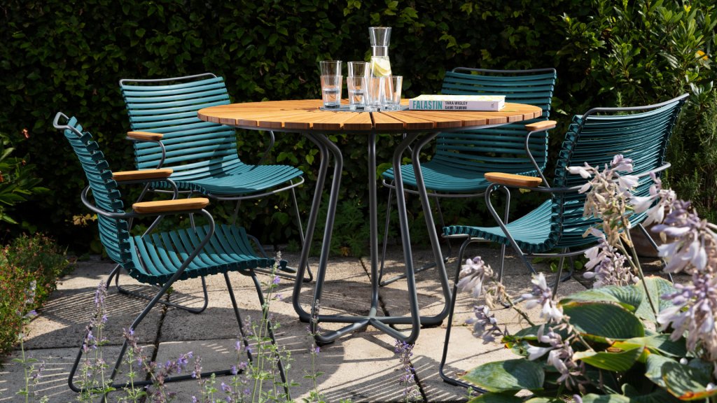 Der Houe Circle ist ein runder Gartentisch mit einer schönen Platte aus gemischtem Bambus. Den Kreis gibt es in 2 Größen, nämlich 150cm und 110cm. Das Schöne an diesem runden Tisch ist, dass er viel Platz bietet. In der Mitte des Kreistisches befindet sich ein zusammengesetzter Stein. Dies ist nützlich, wenn Sie Ihre heißen Pfannen usw. Das skandinavische Design in Kombination mit dem nachhaltigen Bambus sorgt dafür, dass dieser Tisch in jedem Garten gut zur Geltung kommt. Bambus ist eine schnell wachsende Pflanze und daher wesentlich nachhaltiger als Teak. Wir empfehlen den Tisch 2-3 mal im Jahr zu ölen. Wenn der Tisch gut gepflegt wird, hält er sehr lange und behält seine schönen Farben.