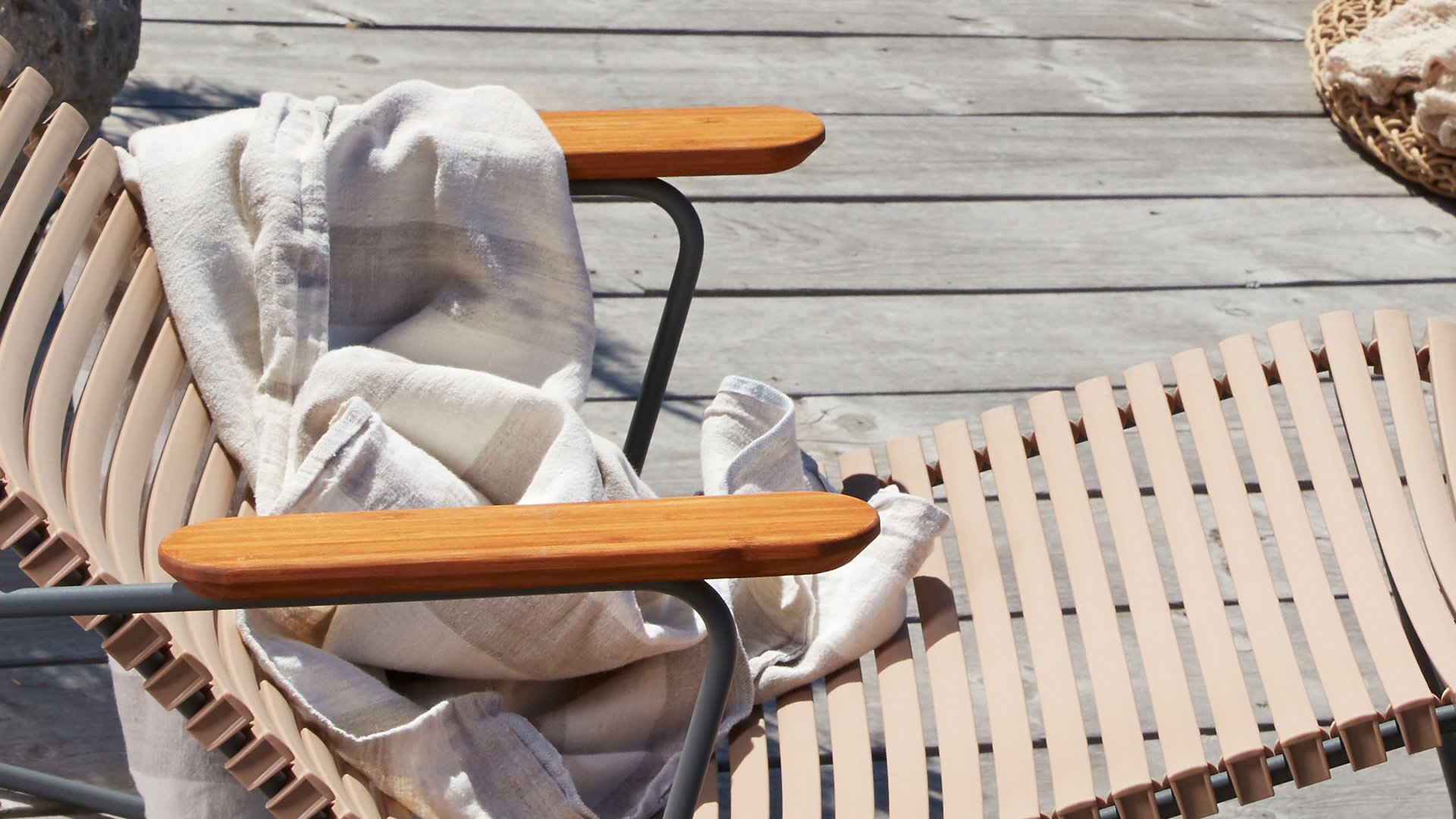 Houe Sketch Gartentisch mit Bambusplatte. Dieser wunderschöne minimalistische Gartentisch der dänischen Designmarke Houe ist in 2 Längen erhältlich: 160 cm und 220 cm. Das Gestell besteht aus Stahl in Kombination mit einer speziellen Pulverbeschichtung, die den Tisch für den Außenbereich geeignet macht. Dieser Tisch passt perfekt zu den Click Dining Gartenstühlen von Houe, das Gestell hat die gleiche Farbe wie das Gestell der Stühle. Da Bambus viel schneller wächst, ist er eine nachhaltige Alternative zu Teak. Bambus sollte 2-3 mal im Jahr geölt werden, dann behält er seine schöne warme Farbe.