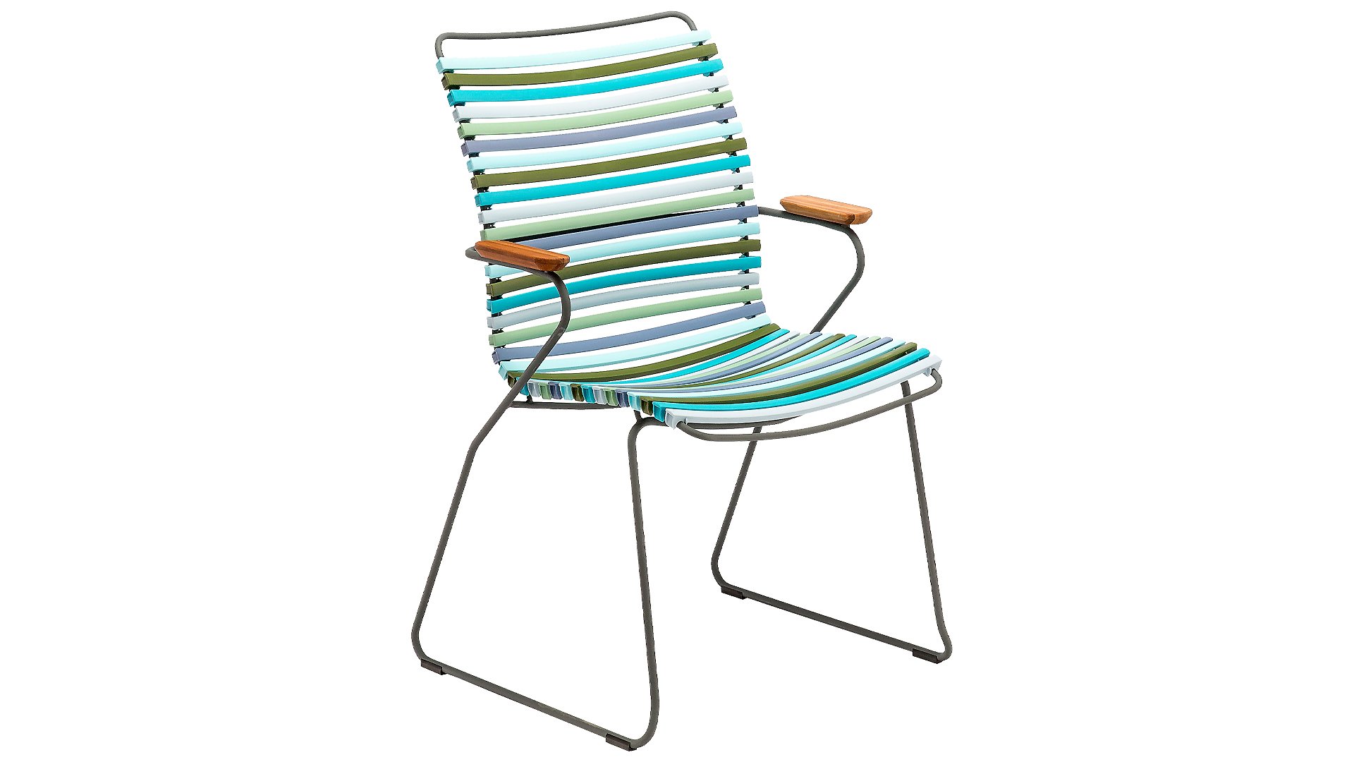 Dieser Gartensessel ist vollständig stapelbar! HOUE CLICK Armchair ist einfach, ehrlich und ergonomisch durchdacht. Dieser Gartensessel hat eine - höhere - Rückenlehne, die sich perfekt an jeden Körper anpasst, die ergonomisch geformte Rückenlehne macht den Stuhl sehr komfortabel zu nutzen, ohne Kissen. Auch erhältlich mit niedriger Rückenlehne (mit oder ohne Armlehnen) oder verstellbar.