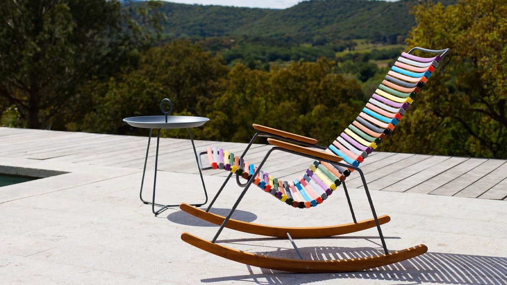 Genießen Sie das Schaukeln in einem Loungesessel mit dem Schaukelstuhl von HOUE, der sowohl für drinnen als auch für draußen geeignet ist! Dieser Gartenstuhl hat eine Rückenlehne, die sich perfekt an jeden Körper anpasst, die ergonomisch geformte Rückenlehne macht den Stuhl sehr bequem ohne Kissen zu verwenden.
