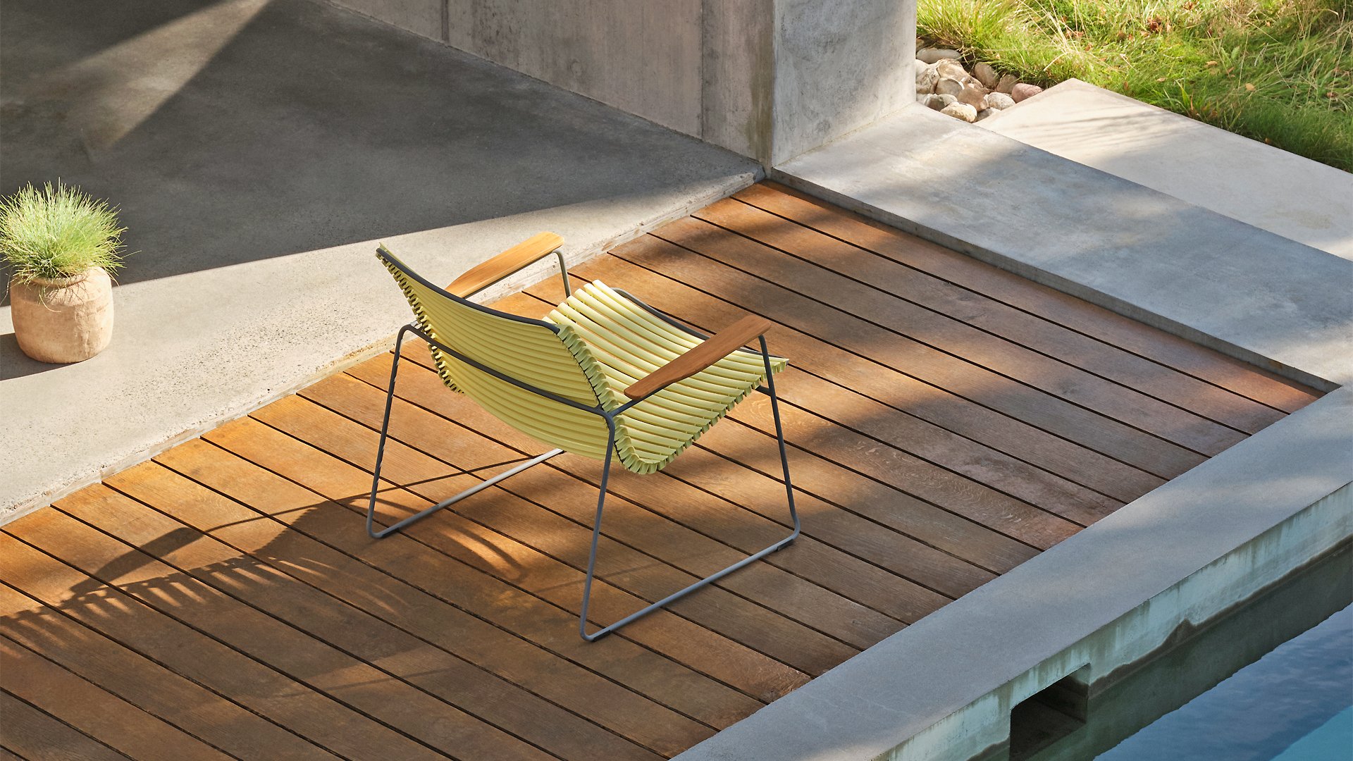 Der CLICK Roomy Lounge-Sessel von HOUE lädt zum Zurücklehnen und Entspannen ein. Dank seiner großzügigen Abmessungen und breiteren Latten bietet er ein besonders weiches, einladendes Sitzgefühl – ganz ohne zusätzliche Polsterung. Die markanten Latten verleihen dem Sessel einen modernen, kraftvollen Look und unterstreichen gleichzeitig die spielerische Modularität der CLICK-Serie. Für noch mehr Komfort und einen stilvollen Akzent lässt sich der Lounge-Sessel optional mit einem exklusiven HOUE Lounge-Kissen ergänzen. Ein zeitloses Design für entspannende Momente im Alltag.