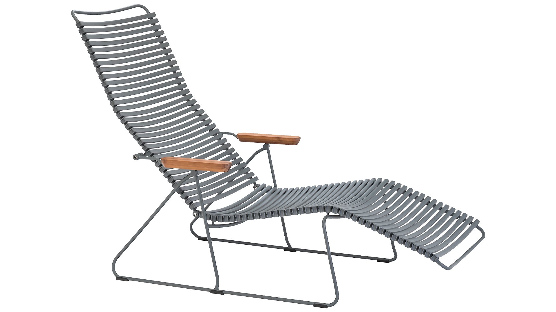 Die HOUE Click Sonnenliegen Kollektion zeichnet sich durch ihr elegantes Design in Kombination mit praktischer Verwendbarkeit aus. Die ergonomische Form in Verbindung mit den Kunststofflamellen sorgt dafür, dass dieser Stuhl ohne Kissen sehr bequem ist. Die Bambus-Armlehne bietet einen schönen Kontrast und eine natürliche Farbe. Genießen Sie die herrliche Liege mit verstellbarer Rückenlehne, in 7 Positionen herrlich entspannen!