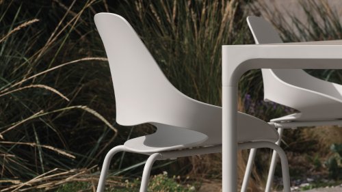 Dieser Gartenstuhl ist seit Jahren ein Erfolg im Innenbereich. Jetzt auch in einer Outdoor-Variante erhältlich. In 3 trendigen Farben: Black, Muted White und Olive Green.