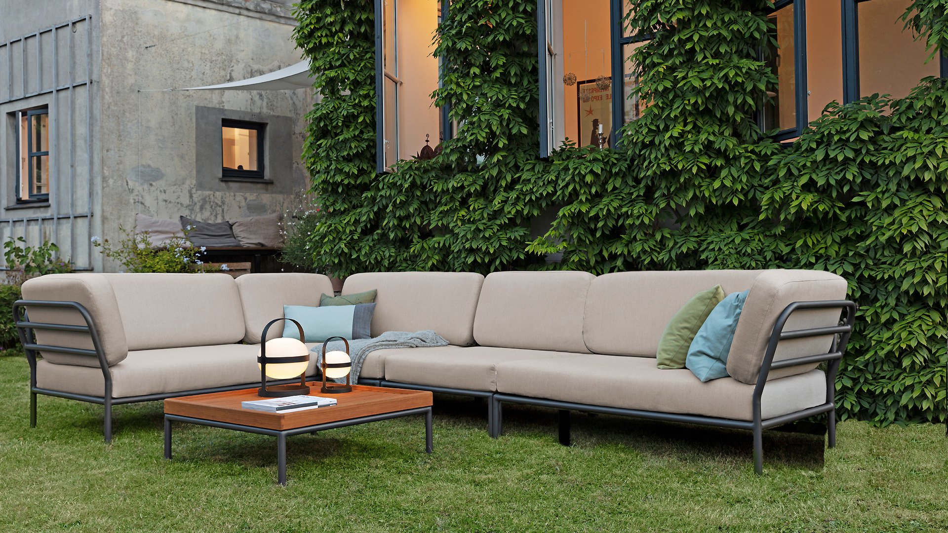 Die Level Lounge besteht aus verschiedenen Elementen, die viele Kombinationen ermöglichen. Der Lounge-Rahmen besteht aus Aluminium und ist hervorragend pulverbeschichtet. Die Kissen in der Lounge sind mit einem speziellen Outdoor-Stoff mit einer Basis aus Quickdry-Schaum versehen. Dadurch sind die Kissen in kürzester Zeit wieder trocken und es bildet sich kein Schimmel. Die Stoffe sind leicht mit einem milden Reinigungsmittel zu reinigen. Die Kissen sind abnehmbar und bei 30 Grad waschbar. Die Kissen in Alpengrün und Esche in Hellgrau / Ecru-Farbe bestehen aus Sunbrella Heritage-Material, das zu 50% aus recyceltem Acryl besteht. Bunte Faserenden aus dem Recycling des Primärmaterials können im Stoff auftreten und die Stofffarbe von Charge zu Charge variieren. Dadurch entsteht ein einzigartiger Stoff mit natürlichem Aussehen und Vintage-Charme. Der Stoff ist Oeko-tex-zertifiziert, wasserabweisend, schmutzabweisend und wartungsfreundlich.