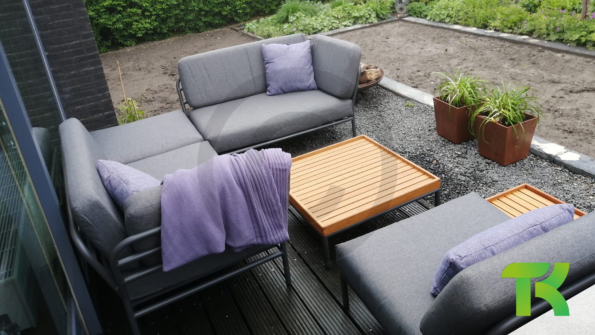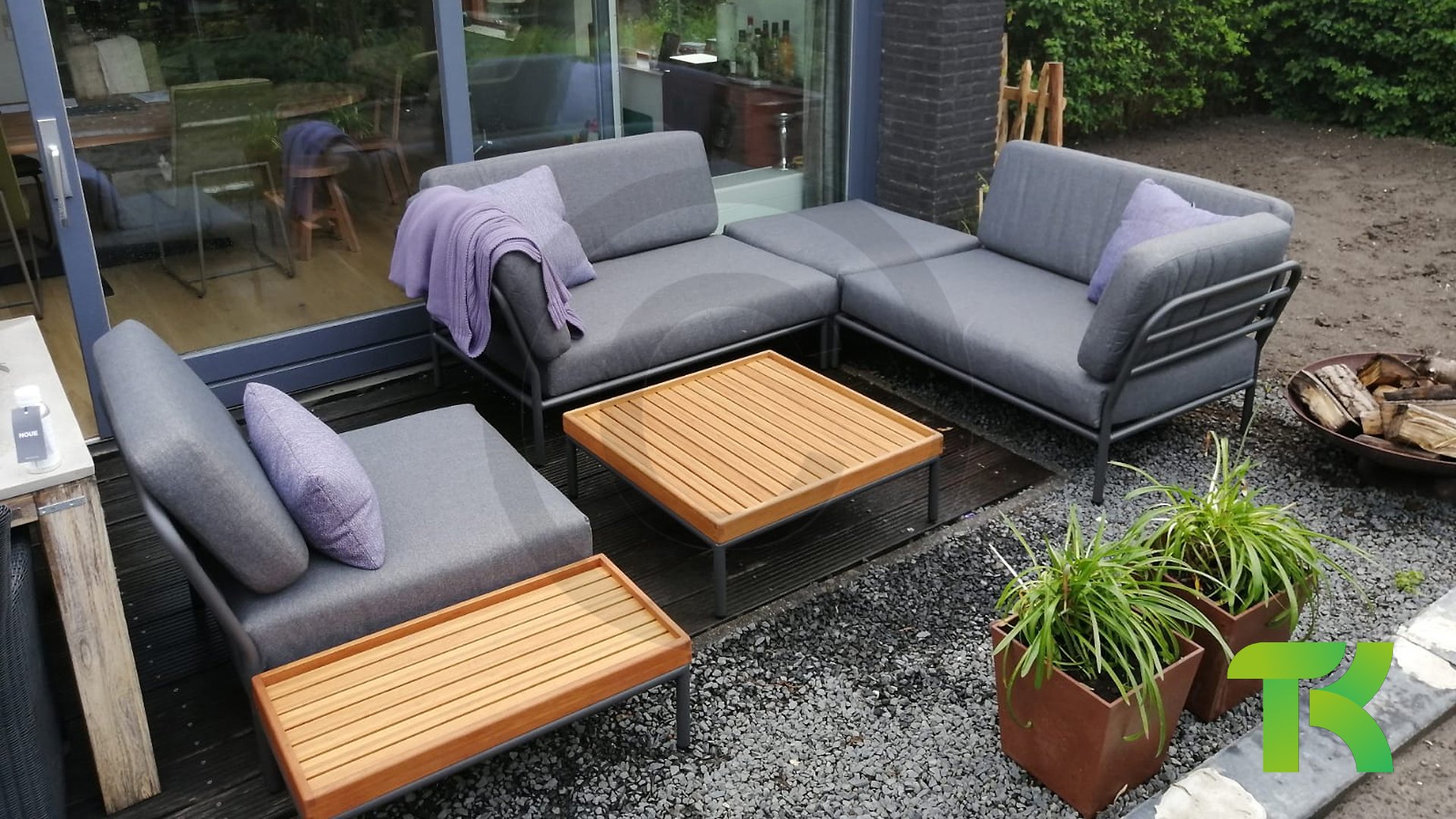Die Level Lounge besteht aus verschiedenen Elementen, die viele Kombinationen ermöglichen. Der Lounge-Rahmen besteht aus Aluminium und ist hervorragend pulverbeschichtet. Die Kissen in der Lounge sind mit einem speziellen Outdoor-Stoff mit einer Basis aus Quickdry-Schaum versehen. Dadurch sind die Kissen in kürzester Zeit wieder trocken und es bildet sich kein Schimmel. Die Stoffe sind leicht mit einem milden Reinigungsmittel zu reinigen. Die Kissen sind abnehmbar und bei 30 Grad waschbar.