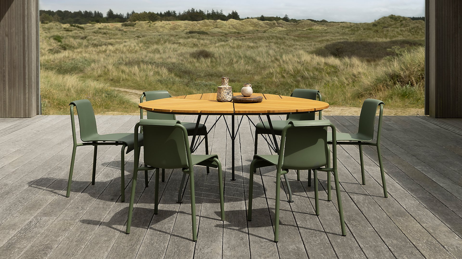 Das Design des HOUE NAMI orientiert sich an den Kräften und Linien der Natur und findet bei jedem Wetter seinen natürlichen Platz im Freien. Der NAMI Stuhl besteht aus einem pulverbeschichteten Stahlgestell mit einer formschönen Kunststoffschale. Der Stuhl wird in Dänemark hergestellt und besteht zu 97 % aus dänischem Haushaltsplastik und zu 3 % aus Farbpigmenten!