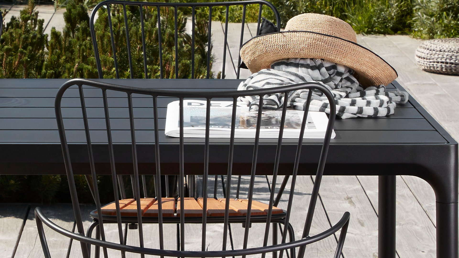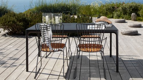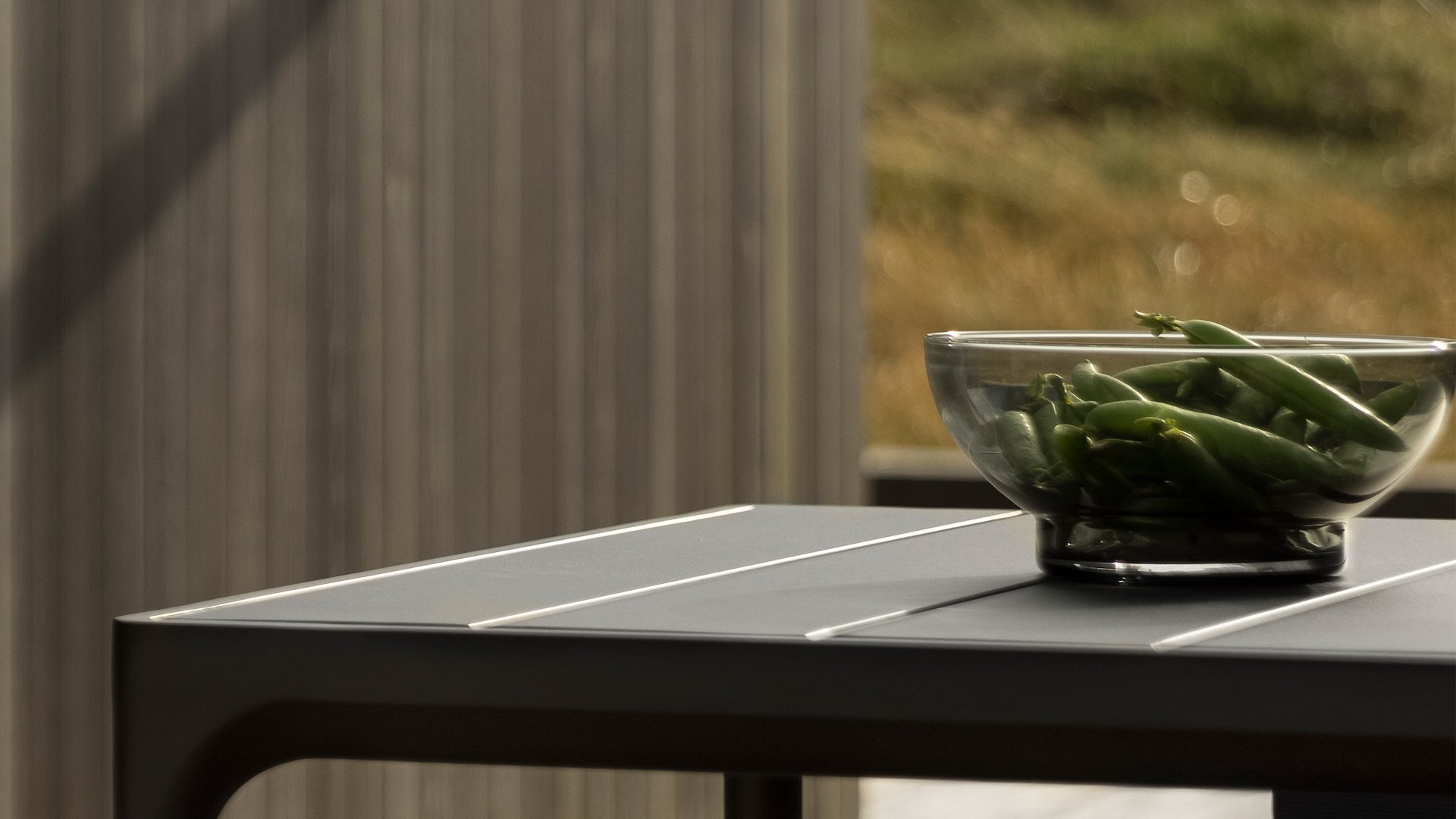 Der Four Tisch von Houe ist ein robustes Modell, das gut in ein industrielles Interieur oder ein cooles Interieur passt. Der Tisch ist so konzipiert, dass er Wind und Wetter standhält. Der Tisch Four hat einen stabilen Aluminiumrahmen, der in schwarz pulverbeschichtet erhältlich ist. Die Aluminium-Tischplatte hat eine Struktur, die sich sehr gut für den Außenbereich eignet. Der Tisch kommt in den Maßen mit einer Länge von 90, 160, 210 und 270 cm und hat alle eine Breite von 90 cm und eine Höhe von 74 cm (Stehtisch 111 cm hoch). Bambus ist eine nachhaltigere Alternative zu Teak. Wir empfehlen, den Bambus 2-3 mal im Jahr zu ölen, dann behält der Tisch länger seine warmen Farben.
