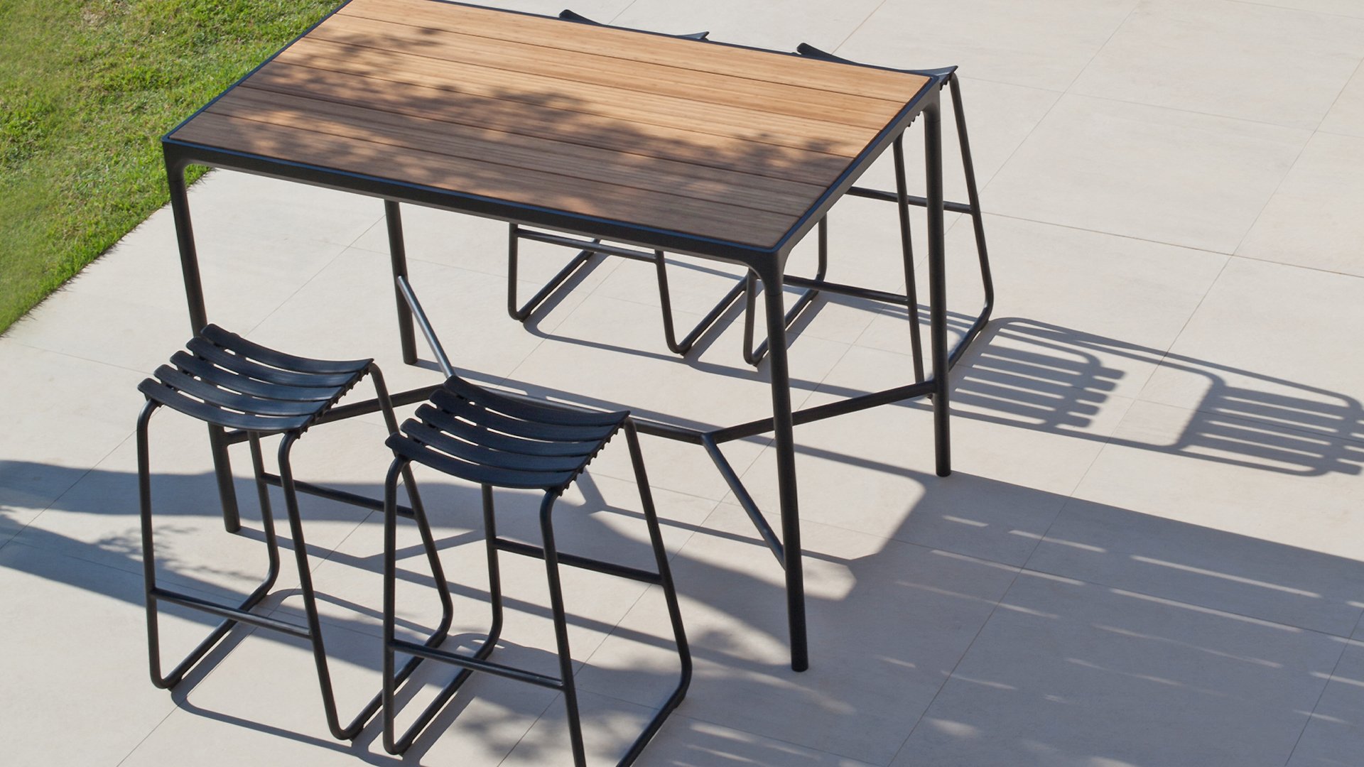 Der Four Tisch von Houe ist ein robustes Modell, das gut in ein industrielles Interieur oder ein cooles Interieur passt. Der Tisch ist so konzipiert, dass er Wind und Wetter standhält. Der Tisch Four hat einen stabilen Aluminiumrahmen, der in schwarz pulverbeschichtet erhältlich ist. Die Aluminium-Tischplatte hat eine Struktur, die sich sehr gut für den Außenbereich eignet. Der Tisch kommt in den Maßen mit einer Länge von 90, 160, 210 und 270 cm und hat alle eine Breite von 90 cm und eine Höhe von 74 cm (Stehtisch 111cm hoch). Bambus ist eine nachhaltigere Alternative zu Teak. Wir empfehlen, den Bambus 2-3 mal im Jahr zu ölen, dann behält der Tisch länger seine warmen Farben.