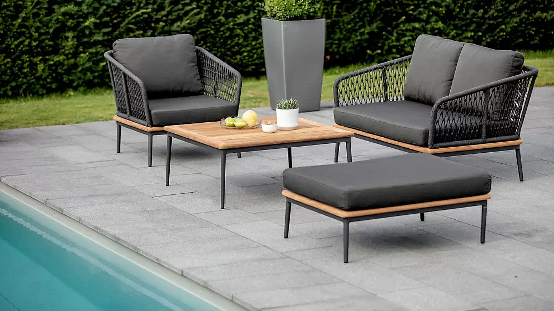 Materialien Loungegruppe Rope, Teak, Pulverbeschichtet Aluminium/Stahl