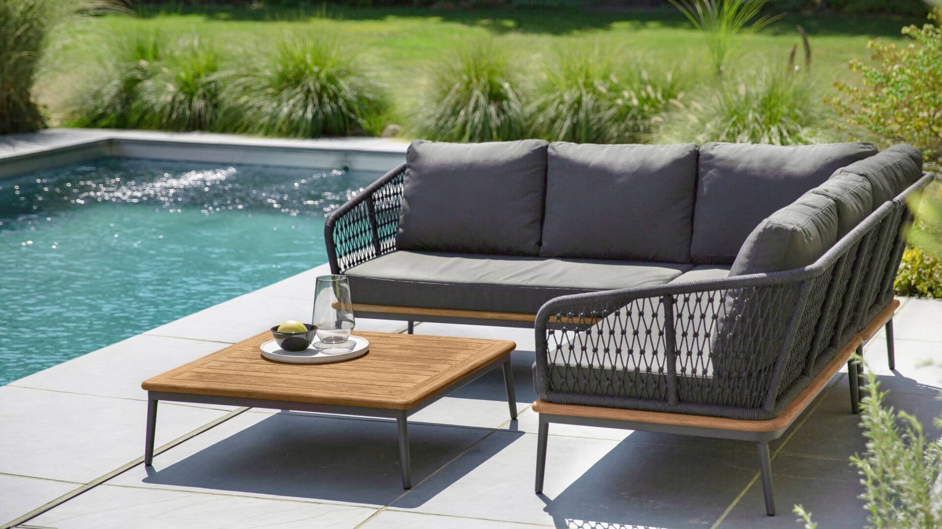 Materialien Loungegruppe Rope, Teak, Pulverbeschichtet Aluminium/Stahl