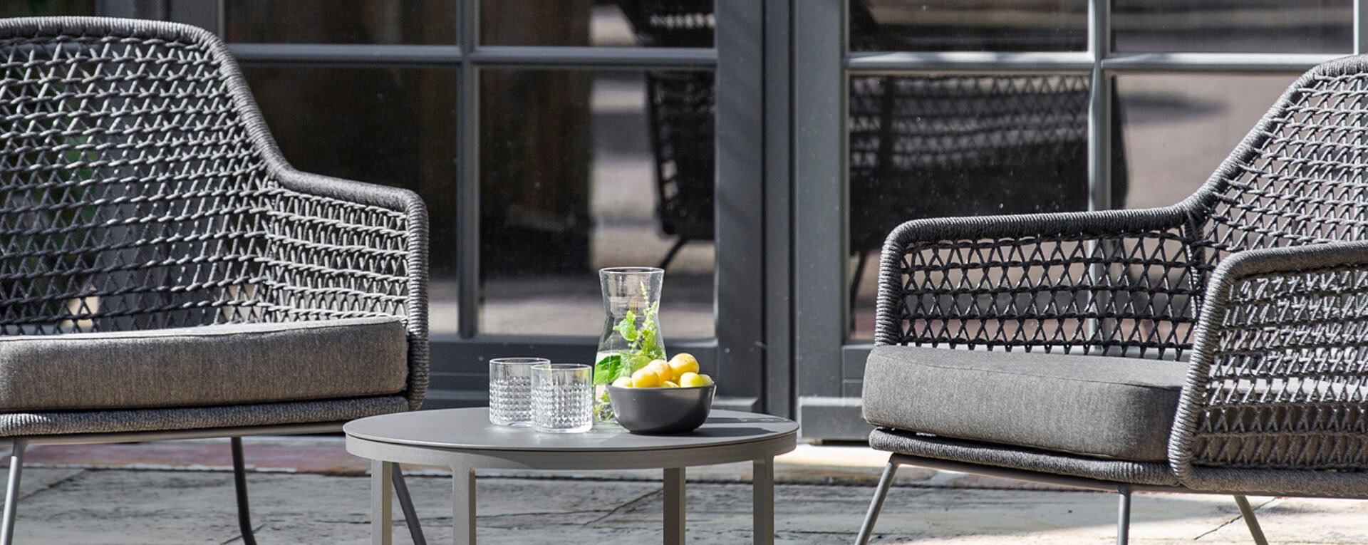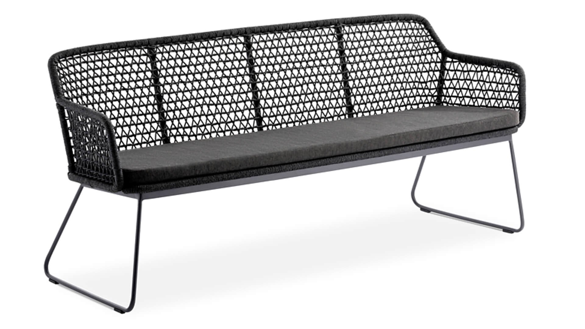 Klare geradlinige Proportionen und eine außergewöhnliche Kordelflechtung zeichnen die Loungegruppe Kubu aus dem Hause Niehoff Garden aus. Eine Besonderheit und zugleich ein optisches Highlight ist die besondere Art der Kordelflechtung. Sie verleiht dem Kubu Lounge je nach Betrachtungswinkel unterschiedliche graphische Impressionen.