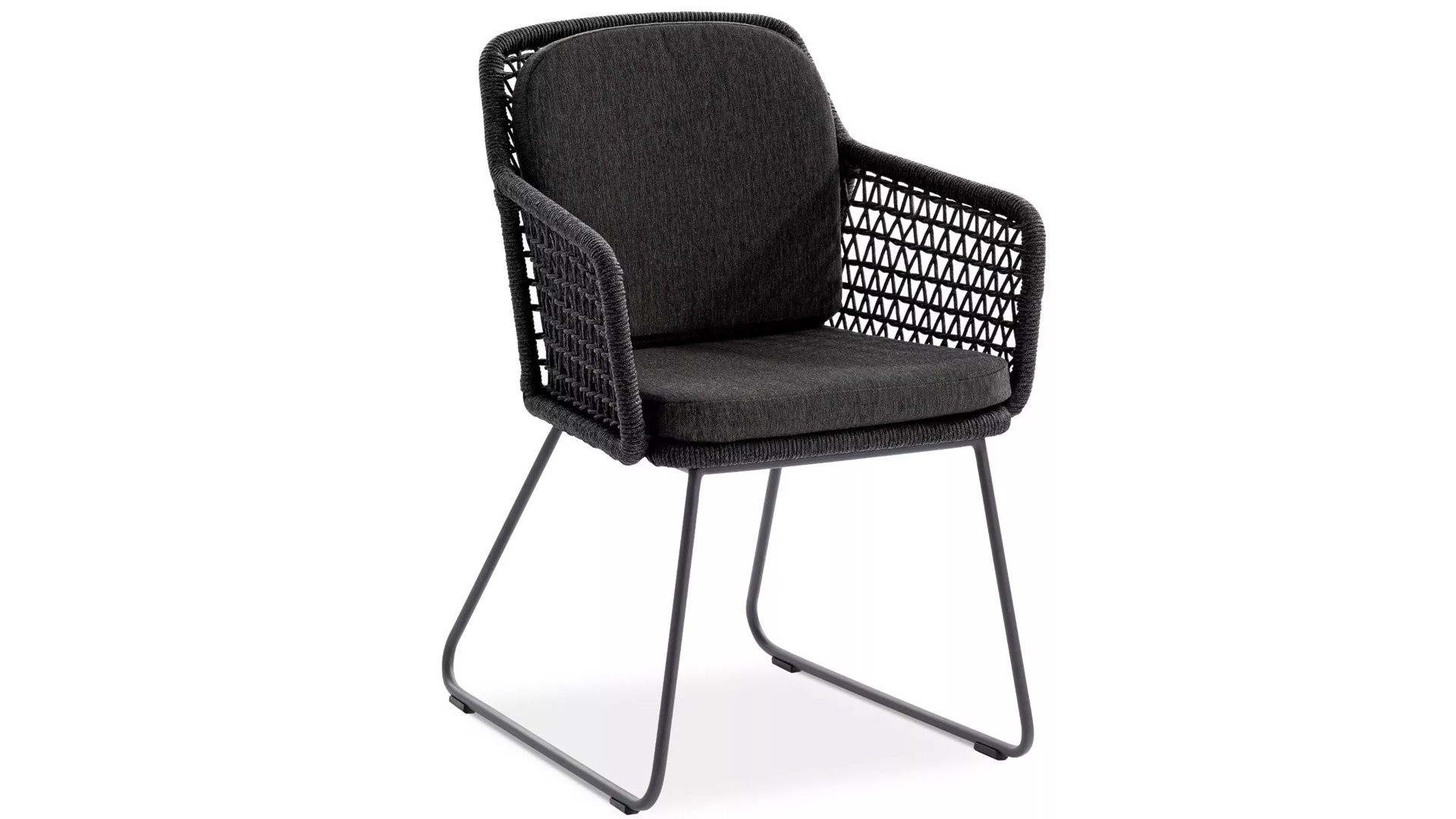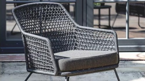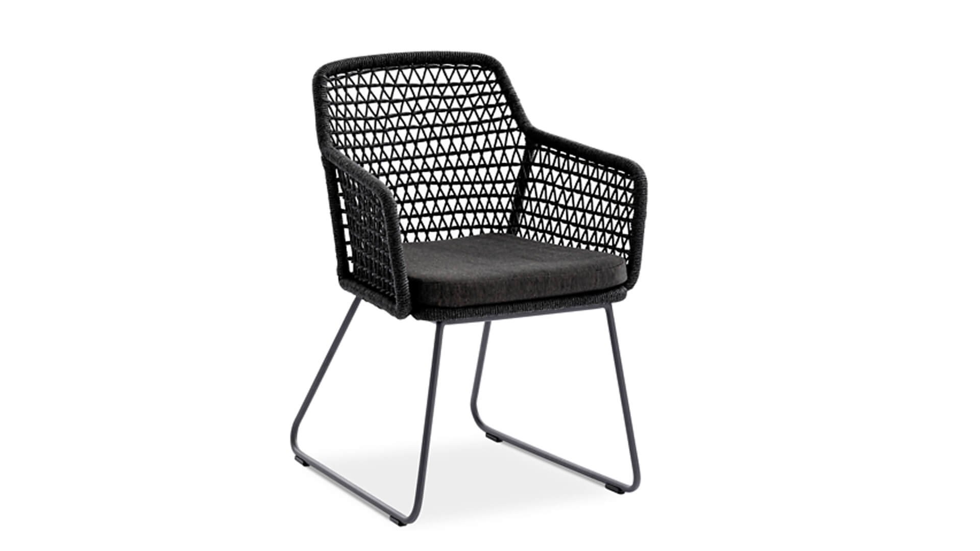 Der Stuhl besitzt ein leichtes pulverbeschichtetes Aluminiumgestell, das an Rücken- und Armlehnen mit hochwertiger Kordelflechtung bespannt ist. Der entspannte Loungecharakter des Stuhls wird durch großzügige Sitz- und Rückenpolster hervorgehoben. KUBU ist Teil einer ganzen Kollektion aus Stühlen, Bänken und Sesseln und wurde erstmals auf der spoga+gafa 2019 vorgestellt.