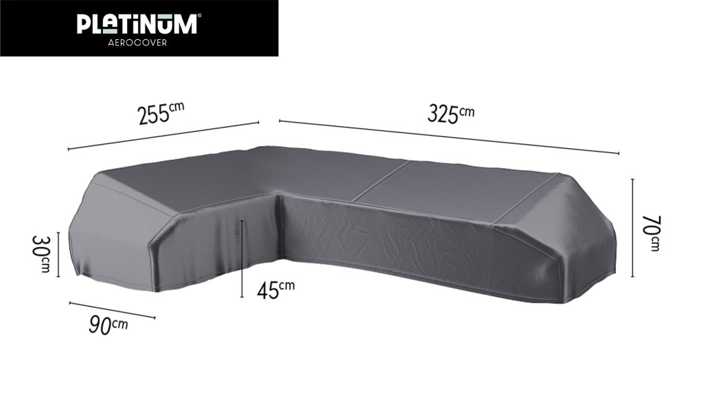 1 x Platinum AeroCover Schutzhülle Loungeset 325x255x90xH30/45/70 L-Form mit 90 Grad Ecke