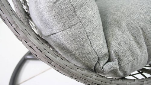 Durch den Ständer können Sie den Stuhl leicht bewegen und überall im Garten platzieren, im Schatten, in der Sonne, auf der Veranda oder auf Ihrer Terrasse. Das Ei kann mithilfe der Stahlkette höher oder niedriger gehängt werden.