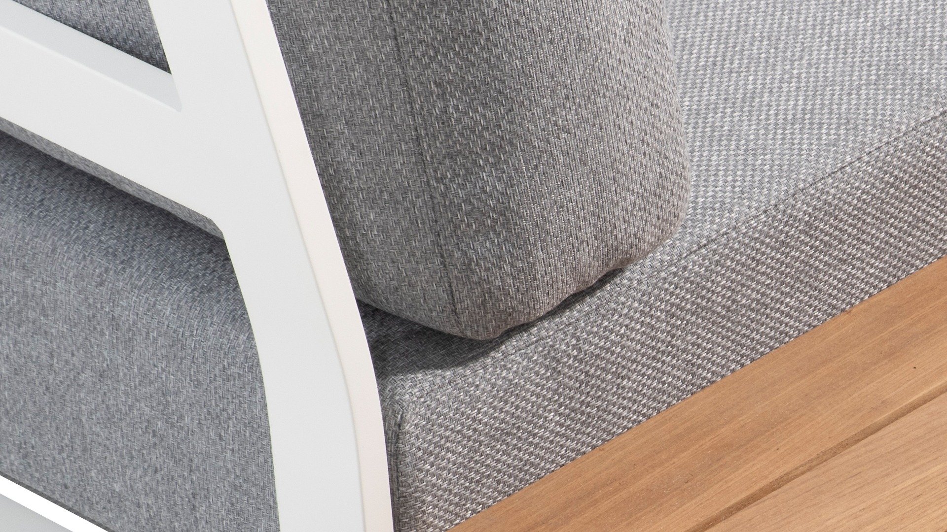Het frame van de Taste van 4 Seasons Outdoor Matisse is gemaakt van aluminium in de kleur Antraciet of in de kleur Wit, gecombineerd met de comfortabele Olefin-kussens in de kleur Lichtgrijs en (bij)tafels met teakhouten details, wat resulteert in een geheel dat gezien mag worden en van alle kanten prachtig is! De kussens hebben een Olefin hoes die afritsbaar is en op 30 graden gewassen kan worden. Dit materiaal is zeer weerbestendig en duurzaam.