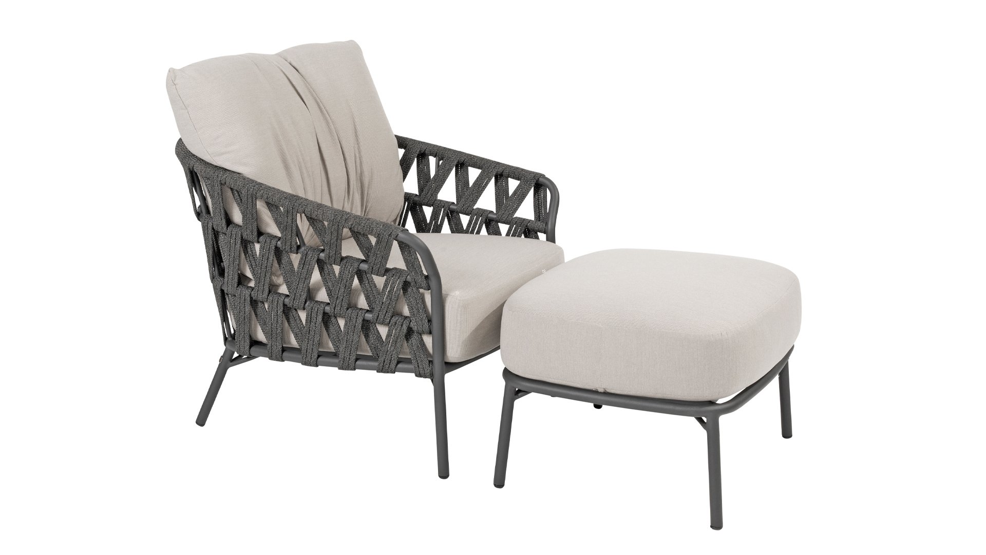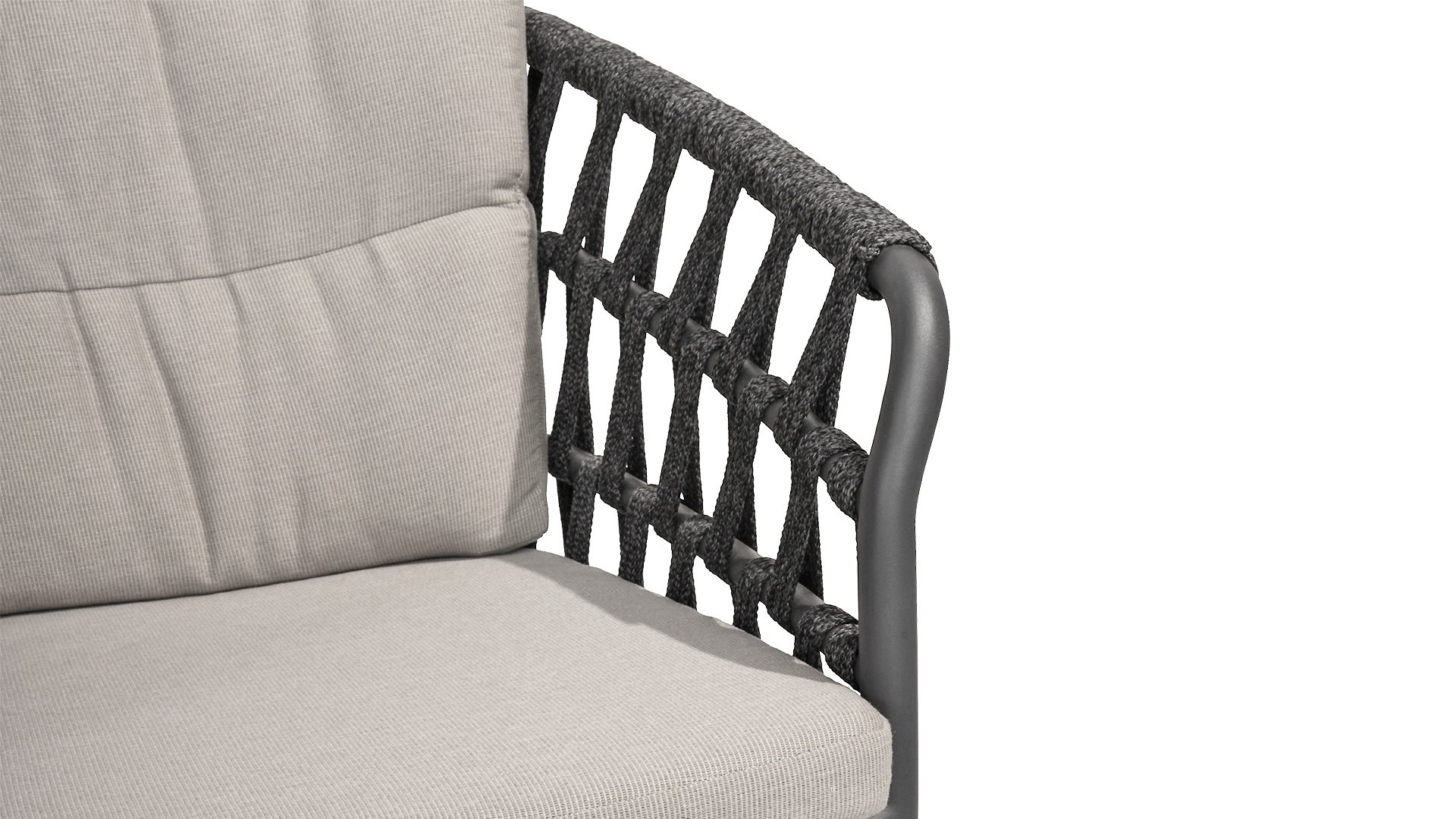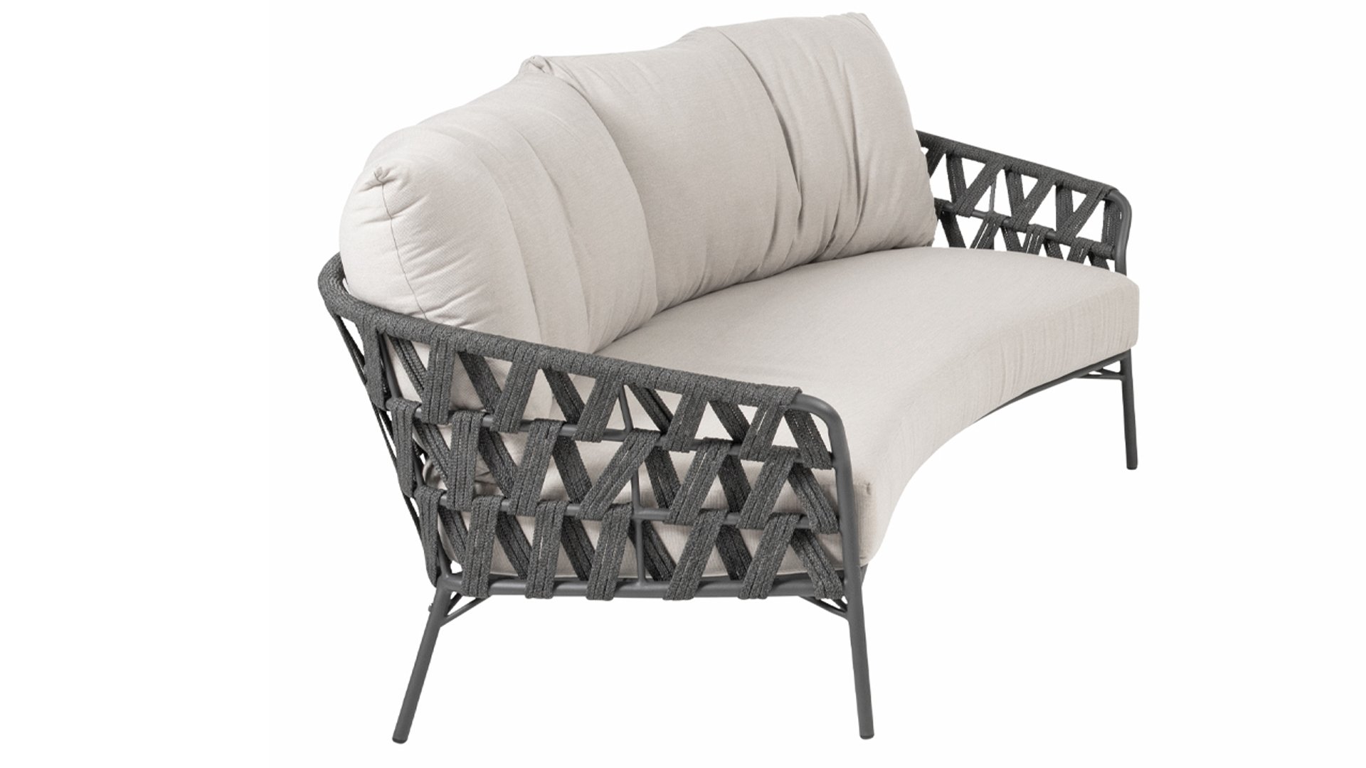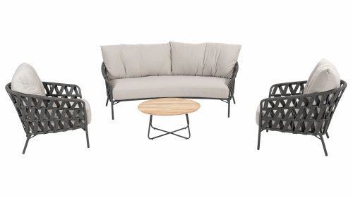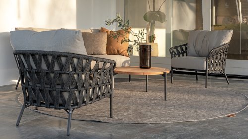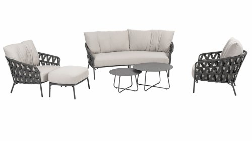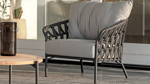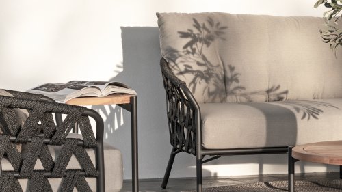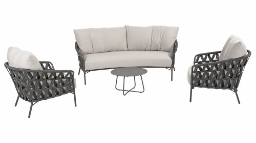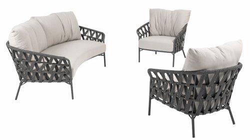 Fühlen Sie das italienische Flair mit Albareto. In dieser Serie von Gartenmöbeln sieht man die Liebe zur Handarbeit, die offenen Seilmuster umhüllen die anthrazitfarbenen Rahmen auf moderne Weise. Die großen, bequemen Kissen sorgen für hervorragenden Sitzkomfort bis in die späten Abendstunden.