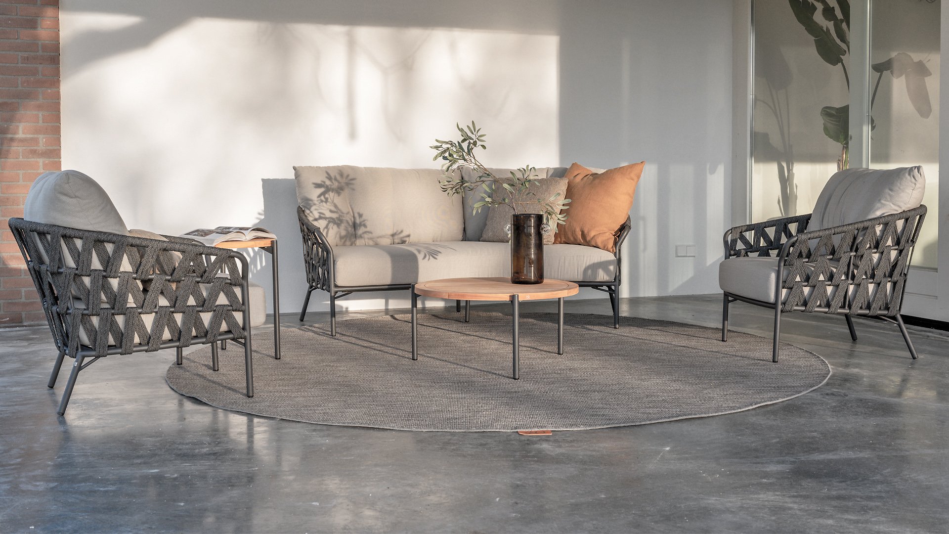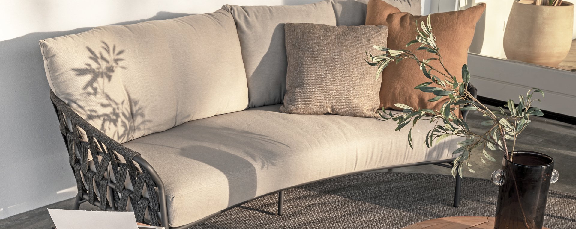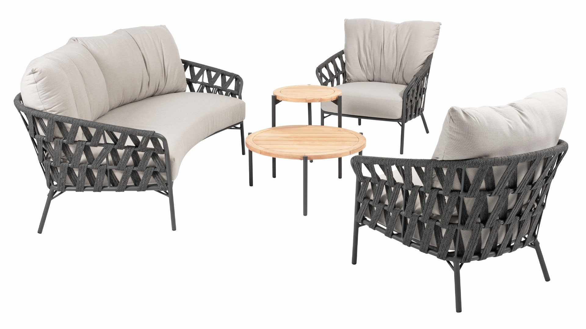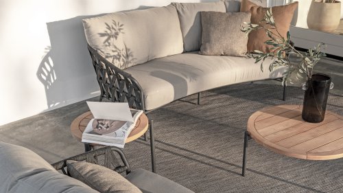 Fühlen Sie das italienische Flair mit Albareto. In dieser Serie von Gartenmöbeln sieht man die Liebe zur Handarbeit, die offenen Seilmuster umhüllen die anthrazitfarbenen Rahmen auf moderne Weise. Die großen, bequemen Kissen sorgen für hervorragenden Sitzkomfort bis in die späten Abendstunden.