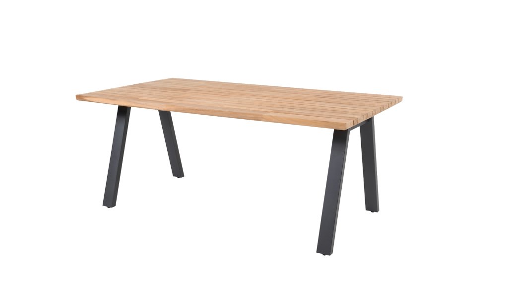 Der Teakholz-Gartentisch Ambassador ist ein beliebtes Modell innerhalb des schönen Sortiments von Taste 4SO. Ambassadors Tische. Ein auffälliges Detail der Teakholzplatte des Ambassador-Tisches sind die verschiedenen Breiten der Planken. Auf den Detailfotos ist dieser schöne Effekt gut sichtbar. Es sorgt für einen originellen und zeitgemäßen Look. Das Untergestell ist aus pulverbeschichtetem Edelstahl gefertigt.